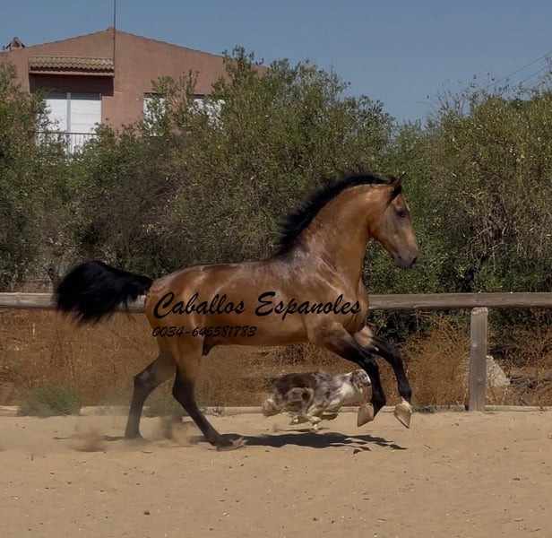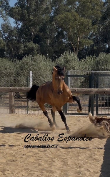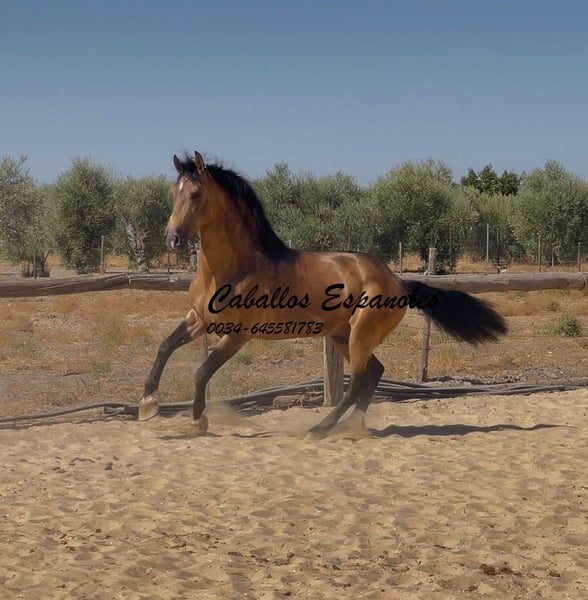 Dieser wunderschöne Falbhengst, ist harmonisch und korrekt gebaut, steht auf einem soliden Fundament. Der Hengst ist in den Grundgangarten geritten. War viel im Gelände und auch auf Ferias. Auf dem Platz arbeitet er immer gerne mit und lernt schnell. Dieser auffallende Hengst ist der passende Partner für tolle Ausritte und Arbeitseinheiten auf dem Platz - ob Dressur, Barrock oder Working Equitation. Das Pferd wird im Auftrag verkauft. Sie kann bei uns bin Beritt bleiben. AKU kann kurzfristig organisiert werden. Internationaler Transport.