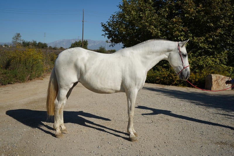 Elegant Andalusian Mare for Sale Andalusian mare, born in 2013. Standing at 16 hands tall, she boasts a striking white coat that captures attention wherever she goes. With her exceptional breeding background, she embodies the classic Andalusian elegance and athleticism. Perfect for a horse enthusiast seeking to improve their breeding program or wants to train their forever companion for the riding discipline of their choice. Queen Diana has a calm temperament. Whether you're interested in dressage, classical riding, or simply enjoying her presence, this mare is a wonderful addition to any equestrian enthusiast's stable. Don't miss the opportunity to own this remarkable Andalusian mare with a distinguished pedigree. For more information visit https://www.whitestallionhay.com/horses/queendiana and to arrange a viewing, please contact us.