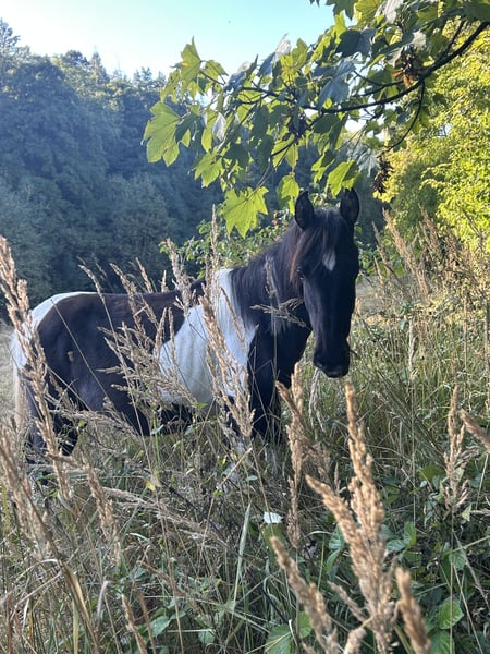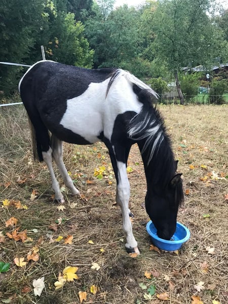 Verkaufe meine süße Jährlingsstute. Sie ist im Juni 2024 geboren und als Absetzer zu mir gekommen. Jedoch wird sie für mich zu groß werden (über 160 - 165, das schwarze Pferd auf Bild 1 ist 148 zum Vergleich). Sie kennt Hänger fahren, Tierarzt, wurde regelmäßig entwurmt und beprobt und geht alleine mit mir spazieren bzw als Handpferd mit. Sie ist bei der ANCADES als spanisches Sportpferd eingetragen und somit auch für die Zucht interessant. Die letzten Bilder zeigen die Eltern - der Papa ist ein Paint/ Lusitano Hengst. Die Mutter eine PRE