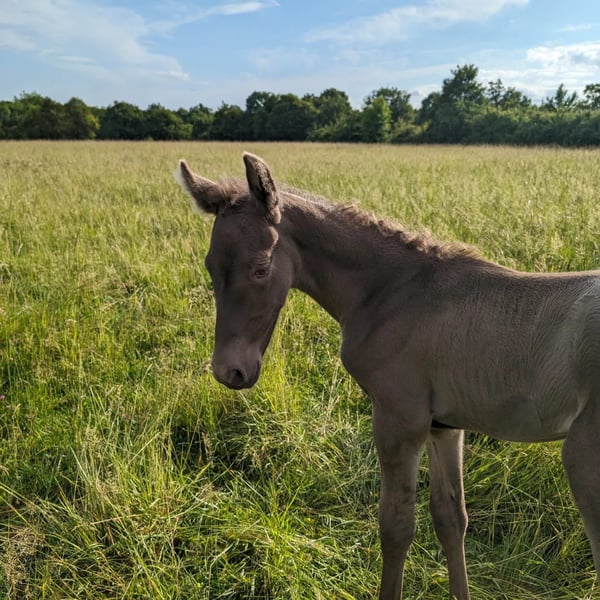Ojalá de Alambar: klaczka PRE PP po Eva Salazar i Yunque la Reina (niesamowity ogier ze stadniny Vencedor na ostatnim zdjęciu) urodzona 7 czerwca 2024 r., podwójnie perłowa na czarnej podstawie. Ojalá jest wysoka i bardzo proporcjonalna. Zapowiada się na bardzo barokowy model z dużą ilością grzywy (podwójna falista grzywa). Bez wątpienia będzie wysublimowaną klaczą. Ma bardzo przyjemny charakter, jest bliska ludziom, ciekawska i inteligentna. Będzie korzystać z późnego, nawet naturalnego odsadzenia, nienagannej edukacji i pełnej opieki zdrowotnej: szczepień, odrobaczania, przycinania itp. Jest jedyną klaczką z podwójną perłą PRE w Yunque la Reina, okazja, której nie można przegapić!