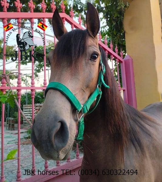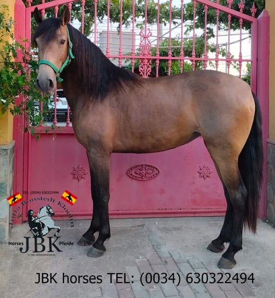 Super liebe junge Andalusier Falbstute Rosa sucht ein Zuhause. Wer Spass daran hätte diese wunderhübsche Stute weiter zu fördern, wird mit ihr nicht verkehrt liegen. Sie kennt das Longieren, den Sattel und Trense und den Reiter auf ihr. Dabei zeigt sie sich unerschrocken. Es wird nicht schwierig werden sie weiter in ihrer Aufgabe als Reitpferd zu festigen. Rosa wuchs im Herdenverband auf und ist somit auch gut sozialisiert. Sie sucht keinen Streit, und geht Quereleien innerhalb einer Herde eher aus dem Weg. 1, 49 m zur Zeit. 4 Jahre.