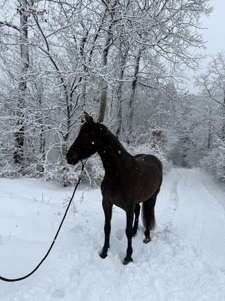 Da wir aus privaten Gründen unsere Pferdehaltung aufgeben müssen sind zwei Pferde zu Verkauf. Das hier ist Freya. Eine bald 5-jährige Spanier Mix Stute. Sie ist ca. 158 cm groß. Freya wurde im vergangenen Jahr schonend angeritten und zeigt sich sehr gut unterm Sattel. Ihre drei Grundgangarten sind alle so als würde man auf einer Wolke schweben. Sie ist super bequem und angenehm zu sitzen und hat schon einen außergewöhnlich gesetzten Galopp für ihren Ausbildungsstand. Freya ist ein sehr feines und gelehriges vielseitig gearbeitetes Pferd. Wir machen viel Bodenarbeit, Freiarbeit, Handarbeit, Doppellonge usw. Sie kann vom Boden und unterm Sattel die meisten Seitengänge. Freya ist ein sehr aufgeschlossenes, mutiges und neugieriges Pferd. Sie ist absolut menschenbezogen und verschmust. Sie kann auch schön einparken und spanischen Schritt. Im Gelände lässt sie sich super in allen drei Grundgangarten reiten. Sie geht auch brav und ruhig durchs Unterholz. Freya läuft als Handpferd und man kann sie auch schön mit Handpferd reiten. Auch im Galopp und quer durch den Wald macht sie das sehr unkompliziert. Da ich zu viele Pferde zu bewegen habe, gehe ich nie alleine mit einem Pferd raus. Deswegen wurde Freya noch nicht alleine ausgeritten. Alleine spazieren kennt sie aber und das alleine ausreiten klappt bestimmt auch, wenn sie sich gut mit dem neuen Besitzer zusammengewöhnt hat. Freya ist ein Pferd mit gutem Temperament. Sie ist ausgeglichen und ruhig, aber sehr leistungswillig. Wir suchen ein Zuhause für sie, in dem sie regelmäßig und abwechslungsreich bewegt wird. Freya ist robust und gesund. Die Zähne sind frisch gemacht und sie läuft barhuf oder mit Hufschuhen. Ihre Hufe haben sehr gute Qualität. Geimpft ist sie natürlich auch. Sie steht im Offenstall in einer gemischten Herde. Verladen klappt auch gut. Wir suchen ein Zuhause mit pferdegerechter Haltung und wertschätzenden Besitzern. Wetterbedingt kann auf unserem kleinen Reitplatz aktuell leider nicht geritten werden. Freya kann gerne in der Bodenarbeit und beim Ausreiten getestet werden. Wir nehmen uns ausführlich Zeit für dich zum Kennenlernen. Fürs Probereiten einer Person verlangen wir 40€. Das wird beim Kauf erstattet. Als Zubehör kann ein Westernsattel (Diamond / 1.000€) oder Springsattel (Prestige / 2.000€) erworben werden. Es kann auch der Rest der Ausrüstung für 300€ übernommen werden. Melde dich gerne, wenn du an diesem besonderen Pferd Interesse hast. Tel: 0152-24429139 Freya beim freien Einparken (scrolle gerne durch mein Profil für mehr Videos von Freya) https://www.instagram.com/reel/DN5pIOCDSdm/?igsh=bmxqd202NWllNWox