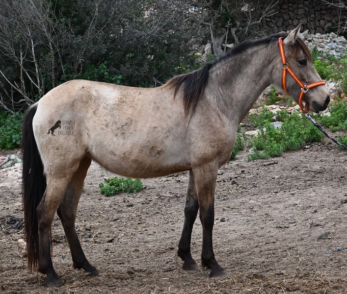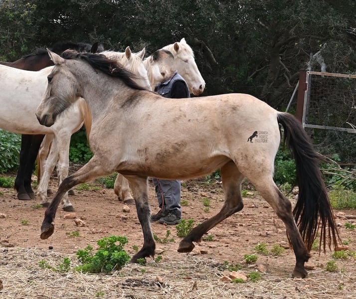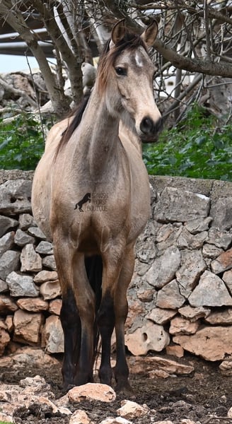 Born in 2019, this dun mare is a real raw jewel. Translated, the golden child's name means "chamomile" and she also has a very calming charisma. Although she is completely raw, she opens up within a few minutes and enjoys being cuddled and handled. She then follows you even when the herd moves in a different direction. With this people-friendly, open character, it will certainly be easy to break her in. Of course, there is also the option of organizing a ride on site. In the herd she is of medium to low rank and due to the 24h robustness, she is well socialized, resistant and well tied up, thanks to the stony ground. I estimate her final height to be 156cm, as it was not possible to measure her freely. She is currently in Mallorca! Videos and photos of the equine passport are available on request. I would be happy to organize an AKU, riding, transport or even your trip if you come to see her in person. Details can be found on my website or in conversation.