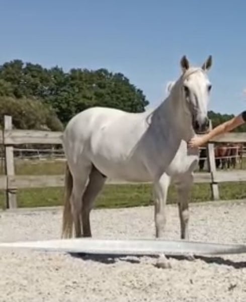 Oferuję na sprzedaż mojego dwunastoletniego wałacha andaluzyjskiego Merlina. Merlin to koń, który uwielbia zwracać na siebie uwagę i jest bardzo milutki. Jest dobrze wyszkolony i biegły w jeździe konnej i lonżowaniu. Ponadto wykazuje się dużymi umiejętnościami w pracy z piórem okrągłym i pracy z ziemi zgodnie z Natural Horsemanship and Straightness Training autorstwa Marijke De Jong. Merlin co dwa lata poddaje się leczeniu stomatologicznemu, dwa razy w roku zabiegom osteopatycznym i co siedem tygodni odwiedza kowala. Ze względu na swoje mocne kopyta jest koniem boso. Ma zdrowe zęby i mocną sylwetkę. Merlin nigdy nie chorował i cały rok spędza na świeżym powietrzu w otwartej stajni z dostępem do szlaku. Niestety, muszę się z nim rozstać, bo ma silny charakter, nad którym nie zawsze potrafię zapanować. Na polu zachowuje się zrelaksowany, gdy w pobliżu znajduje się drugi koń. Jednak sam w terenie ma tendencję do denerwowania się i skakania na boki. Wtedy też ma tendencję do garbienia się. Dlatego do jazdy na Merlinie potrzebny jest doświadczony jeździec z bezpiecznym dosiadem, a przede wszystkim zapewnienie mu bezpieczeństwa. Szukam ambitnego jeźdźca rekreacyjnego dla Merlina, który daje mu bezpieczeństwo, a jednocześnie ma konsekwentną, ale empatyczną rękę. Ten koń zdecydowanie nie nadaje się dla początkujących ani jako koń rodzinny. Obecnie, jak wcześniej opisano, Merlin mieszka na padokowym szlaku z trzema innymi wałachami. Chciałbym, aby nadal przebywał w otwartej stajni lub na szlaku. Idealnie mógłby tu przebywać również jako koń stajenny, z całorocznym wypasem i zapasem siana w różnych miejscach, dostępem do ujeżdżalni, okrągłej zagrody i otwartej stajni z torem. Skontaktuj się z nami tylko wtedy, gdy jesteś poważnie zainteresowany.