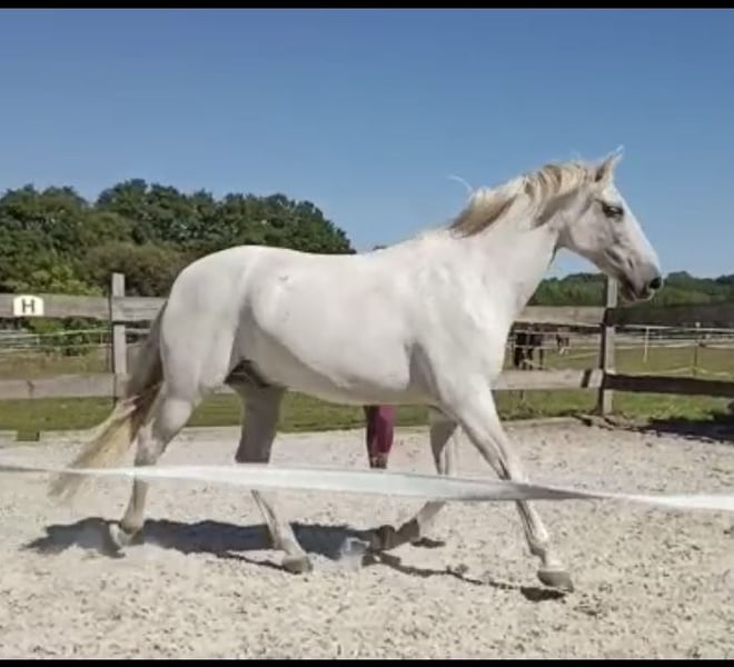 Je propose à la vente mon hongre andalou de quatorze ans, Merlin. Merlin est un cheval qui aime l'attention et qui est très câlin. Il est bien dressé et maîtrise l'équitation ainsi que le longe. De plus, il montre une grande habileté dans le travail en rond et le travail au sol selon le Natural Horsemanship. Merlin subit un traitement dentaire tous les deux ans, reçoit des soins ostéopathiques deux fois par an et voit le maréchal-ferrant toutes les sept semaines. En raison de ses sabots solides, c'est un cheval pieds nus. Il a des dents saines et une constitution robuste. Merlin n'a jamais été malade et passe toute l'année dehors dans un abri ouvert avec accès aux sentiers. Je recherche pour Merlin un cavalier de loisir ambitieux qui lui apporte de la sécurité tout en ayant une main cohérente mais empathique. Ce cheval n'est pas adapté aux débutants. Actuellement, Merlin vit, comme décrit, sur un paddock-trail avec trois autres hongres. Je souhaite qu'il continue à être logé dans un abri ouvert ou un trail. Idéalement, il pourrait également rester ici en tant que cheval de pension. Veuillez me contacter uniquement en cas d'intérêt sérieux.