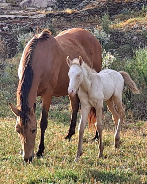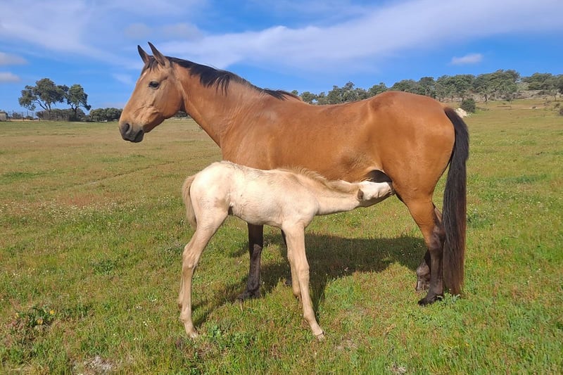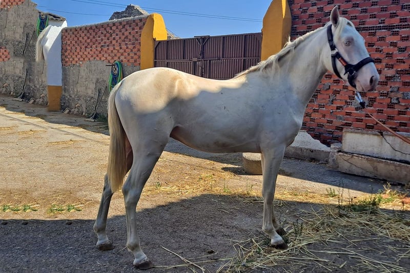 We are offering our wonderful young gelding Pegaso (born May 2023) for sale – a real eye-catcher in the extraordinary special color Cremello with the best prerequisites for a versatile future. Pedigree & Rearing: Pegaso comes from a carefully selected pairing of Andalusian and Lusitano – two Iberian breeds that combine elegance, rideability, and a strong character. He is being sold directly by the breeder and is raised in a species-appropriate manner: in a herd, on large pastures, and outdoors year-round – the best conditions for a healthy, balanced horse with strong nerves and good social skills. Prospects & Uses: Pegaso has everything it takes to shine in various disciplines later on: ✔️ Baroque Riding ✔️ Dressage ✔️ Working Equitation ✔️ Leisure and Trail Riding His current height at the withers is age-appropriate – the expected final height is around 1.60–1.64 m. His father, an impressive Cremello stallion standing at 1.68 m, can be seen in the last photos of the advertisement – as well as Pegaso as a foal with his mother. Special Features: ✨ Special color Cremello – absolutely rare and noble ✨ Great movements & correct conformation ✨ People-oriented, curious, and intelligent ✨ Directly from the breeder – well-socialized and raised Pegaso is currently still untrained and ready to be handed over to loving and competent hands that wish to further develop his potential. Of course, he is familiar with grooming, washing, tying, and leading. We are happy to arrange transport.