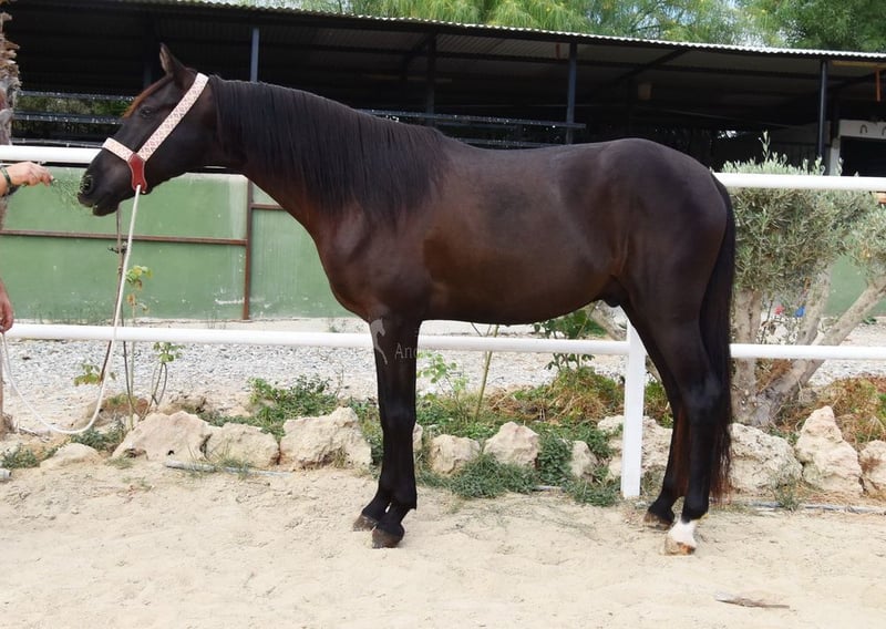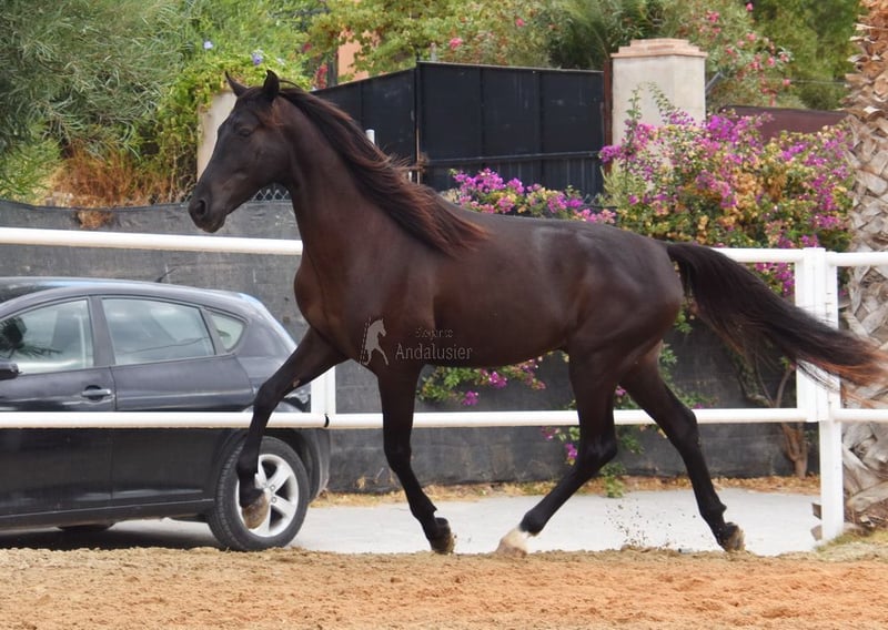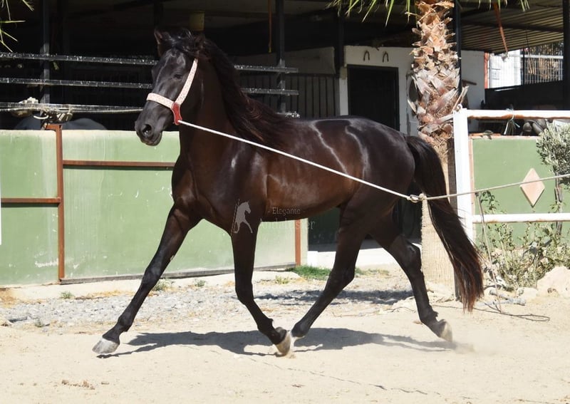 carácter amable, lungido con silla y brida, será montado pronto, buenos movimientos www.elegante-andalusier.com