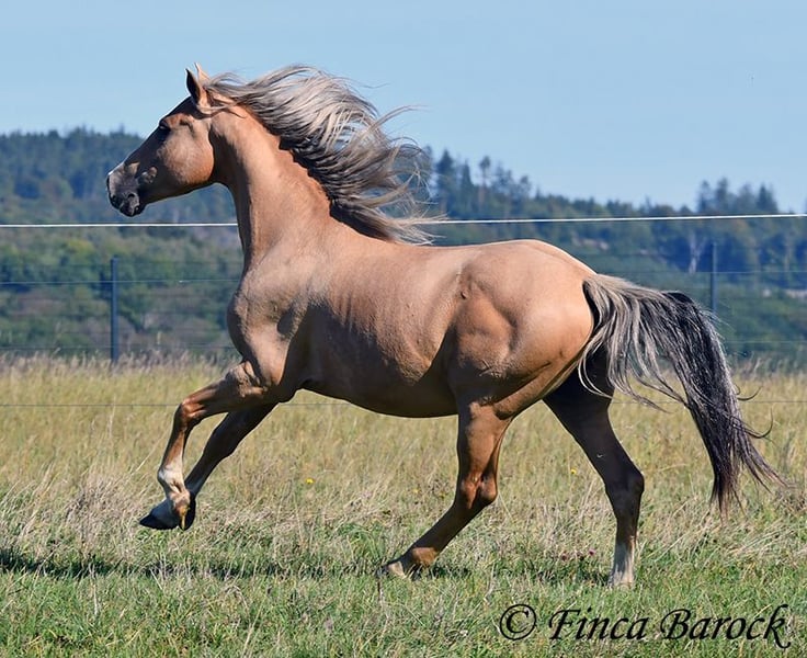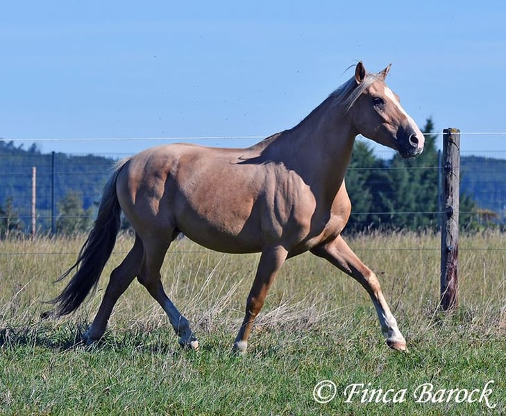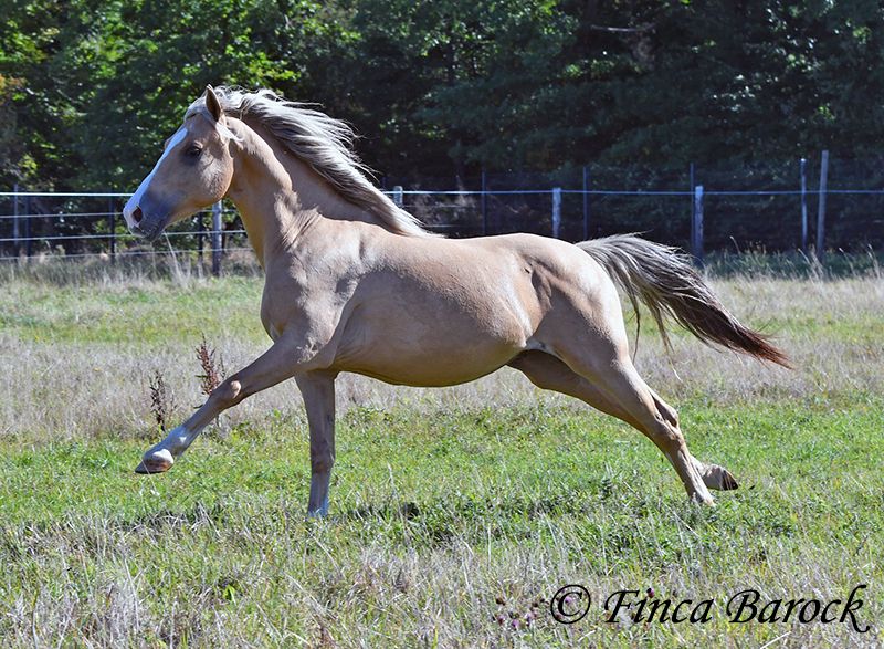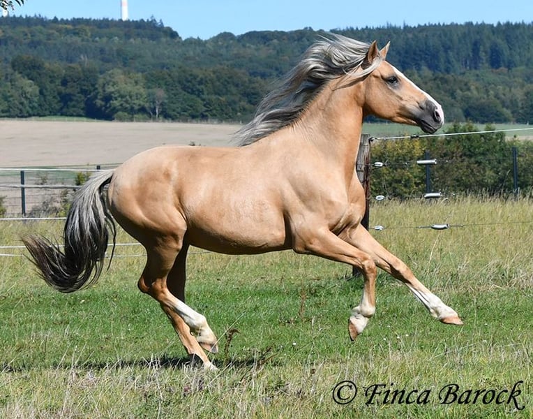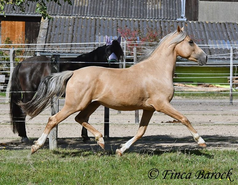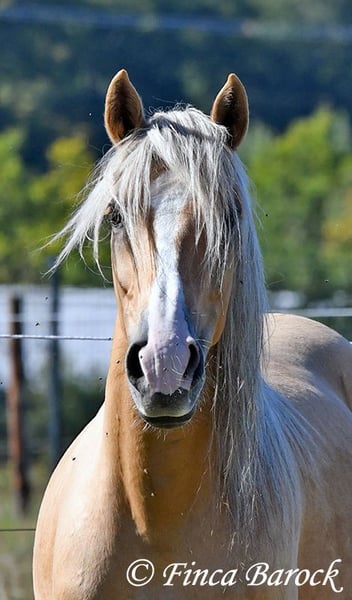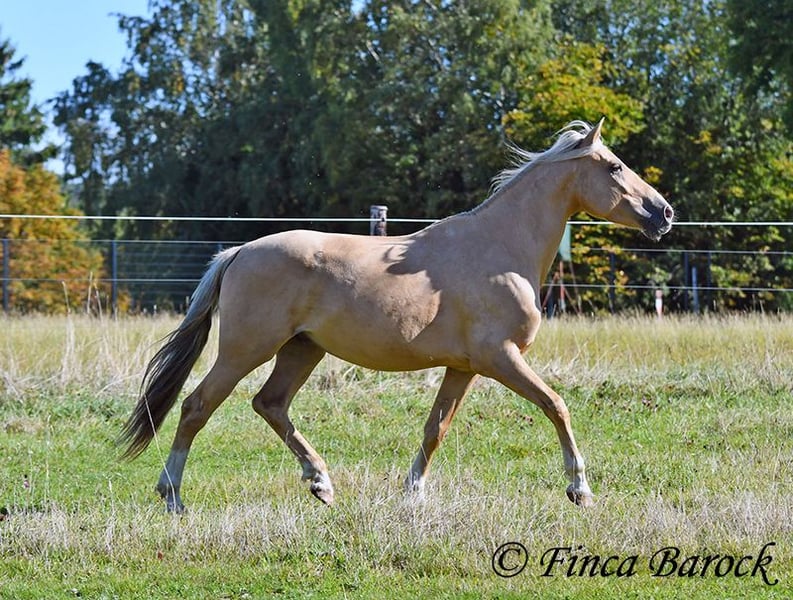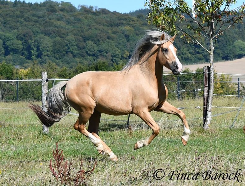 Breed: Andalusian Name: Lamborgini Gender: Gelding Height: 146 cm Age: 14.04.2020 Color: Palomino Price: €7700 Father: n/a Mother: n/a Lamborgini, a little guy in a stylish jacket with a friendly character! With his silver mane, he is an absolute rarity! Despite his size, he covers ground very well and is still fully in development. He will definitely continue to grow. Lambo is solidly trained in the basic gaits. The focus has clearly been on trail riding for him. He has experienced more of the world outside than in the arena. He loves trail riding, shows little concern for the environment, and goes out alone as well. In the arena, we are currently refining the basics; he learns something new in every session. Even with less experienced riders, he shows himself to be exceptionally well-behaved and polite. He wants to please and tries to respond to new aids for him. A fantastic boy for the smaller rider who is looking for a horse that enjoys trail riding but is also motivated in the arena. Lamborgini has already undergone a clinical examination (without abnormalities) and X-rays. As he has a finding (cartilage chip), he is being offered at a significantly lower price. Contact: Finca Barock, Tel. 0173-696 31 81, 56291 Wiebelsheim