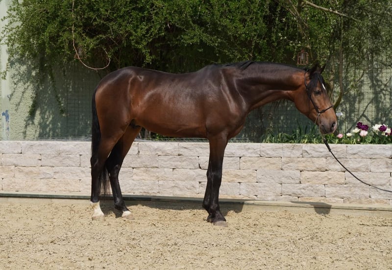The beautiful and charming young gelding has an active height of 16.0 hands and current X-rays available. He has been gently and age-appropriately trained by me. Romero is very eager to learn and exceptionally fearless. He possesses three beautiful gaits with good rhythm and cadence. He has been regularly dewormed, and has been seen by the farrier, dentist, and physiotherapist. Viewing the horse is charged at €25.00. The price will increase with additional training. For further questions, please feel free to contact me anytime by phone or via WhatsApp at +49 176 16363435.