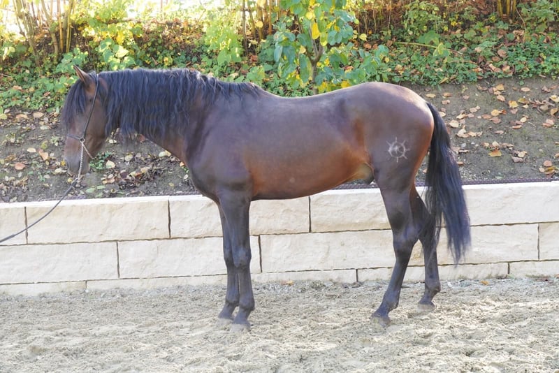 Verkaufe eleganten Andalusier-Wallach Zum Verkauf steht ein wunderschöner, schwarzbrauner Andalusier-Wallach. Mit einem aktuellen Stockmaß von 166 cm. Der vielseitige Dressurpartner überzeugt durch sein edles Erscheinungsbild und sein angenehmes Temperament. Der junge Wallach zeigt viel Potenzial für den Dressursport/Working Equitation. Beim Reiten ist er super fein in der Hand und bringt dabei drei sehr gute Grundgangarten mit sich . Aufgrund seiner motivierten Einstellung lernt er sehr zuverlässig und konzentriert. In der täglichen Arbeit ist er eine wahre Freude. Regelmässig wurde er entwurmt dem Hufschmied , Zahnarzt und Physiotherapeuten vorgestellt . Aktuelle Röntgenbilder liegen vor, welche bei ernsthaften Interesse zur Verfügung gestellt werden . Bei Interesse oder für weitere Informationen stehe ich gerne zur Verfügung. Eine Besichtigung/ Proberitte werden mit 50€ verrechnet .