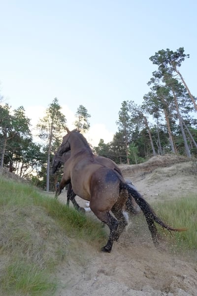 Jeśli szukasz młodego klejnotu, który nie jest jeszcze "zepsuty", jak mówią, ale zamiast tego, którego wola i autentyczność zostały starannie pielęgnowane, a chęć współpracy kultywowana - jest to rzadka okazja. 6-letni andaluzyjski/hanowerski wałach Lord of Peace (Miervaldis): Został wychowany w środowisku rodzinnym i od najmłodszych lat był codziennie obsługiwany. Odbył wiele długich wędrówek z innymi końmi (prowadzenie z ziemi). Ma doświadczenie z parasolami, plastikowymi plandekami, piłką, dźwiękami, maszynami itp. Ogólnie rzecz biorąc, ma duże doświadczenie z ziemi, wykonał proste sztuczki, takie jak wejście na piedestał, krok hiszpański, swobodne skoki, pracował z Equiband i tyczkami cavaleti. Ma solidne wykształcenie w pracy na lonży. Żyje 24/7 na zewnątrz z wolnym wejściem do stajni w mieszanym stadzie 4 koni, otrzymuje odpowiednie suplementy itp. i nie miał żadnych problemów zdrowotnych. Oczywiście regularne wizyty u ferriera (chodzi boso) i prace dentystyczne są na bieżąco. Jest mieszańcem hanowerskiej mamy (Harmony - czarna klacz widoczna na zdjęciach) i ogiera PRE Ligero de Gredos. Dziadek PRE Revoltoso XXIX, rodowód dostępny tutaj: https://lwhorse.lv/horse/57247 Zdjęcia rentgenowskie pleców wykonane w wieku 3 lat wykazały całowanie kręgosłupa, więc wprowadzono odpowiedni protokół treningowy, aby rozwinąć go jako zdrowego i wygodnego towarzysza jazdy konnej. Obecnie jest poddawany 2 zabiegom chiropraktyki rocznie, jego plecy nie są bolesne, a on stoi silnie i dobrze utrzymuje mięśnie podczas rekreacyjnego reżimu. Zarówno weterynarz, jak i chiropraktyk dali zielone światło do dalszego uruchamiania go pod siodłem. Są oczywiście rzeczy do rozważenia- 1) zawsze odpowiednia rozgrzewka, bez zimnego grzbietu 2) odpowiednie ujeżdżenie w ręku, treningi na drągach i nasz osobisty faworyt - Balance Through Movement Method i Pillar 1 3) upewnienie się, że siodło jest odpowiednio dopasowane do kręgosłupa. Wszystkie te trzy rzeczy powinny być nienegocjowalne dla każdego konia, ale tutaj nie "ujdzie ci to na sucho". Obecnie jest przygotowywany do jazdy, więc oczywiście jest "zielonym" koniem dla kogoś, kto może kontynuować jego edukację samodzielnie lub z pomocą trenera. Jego dotychczasowy trening był powolny i stały, polegał na budowaniu solidnych podstaw i wspieraniu współpracy. Trzeba poświęcić mu czas, by mógł kontynuować naukę w swoim tempie, ale gdy już wie, czego się od niego wymaga - robi to z niekończącą się energią i entuzjazmem. Załadunek do przyczepy: ładuje od razu i łatwo (poniżej 30 sekund ;) to był duży priorytet, aby przygotować do tego wszystkie nasze młode konie od najmłodszych lat. Odbył 6 dużych przejażdżek (230 km każda do naszej nadmorskiej posiadłości) z towarzyszem i dobrze podróżuje. Jednak NIE jest gotowy do podróżowania SOLO, tylko z koniem towarzyszącym, aby zapewnić młodemu człowiekowi dalsze pozytywne doświadczenia. Został wychowany jako koń rodzinny i jestem gotowy, aby stać się czyimś jedynym! Godny zaufania i stały towarzysz. Jest wszechstronnym koniem i będzie się dobrze rozwijał dzięki różnego rodzaju aktywnościom razem ze swoją osobą - niezależnie od tego, czy jest to jazda konna, jazda konna, hacking, praca ujeżdżeniowa czy zwykłe wspólne spacery. Jeśli wzbudził Twoje zainteresowanie, zapraszamy do odwiedzenia nas i poznania go.