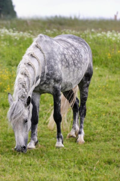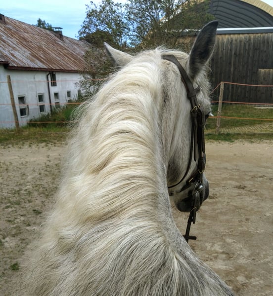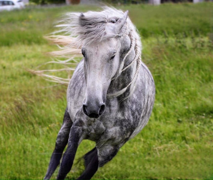 This beautiful 8-year-old, approximately 1.50 m tall apple-gray gelding is looking for his person with horse sense in a FOREVER HOME. A leisure-ridden horse, as beautiful as it can be, with buttery smooth gaits and a consistent rhythm. His super lovely long mane and his charming character make him a dream horse to fall in love with. He is completely uncomplicated and well-behaved in handling, but he quickly realizes who is in charge. A highly intelligent fellow with character, he tests his limits - he couldn't be more charming and playful. He is simply fun, and it will never be boring with him, as he is always in a good mood and ready for a joke. The boy has a somewhat sturdier build and can do just about anything. He is familiar with single driving, terrain, road traffic, riding arenas, indoor arenas, round pens, washing, tying, grooming, farrier, veterinarian... etc. Everything a horse needs in daily handling. Additionally, he is compatible in the herd and currently spends the day with a gelding and a stallion on a portioned pasture and then in his box. 24/7 pasture is expressly NOT recommended, as he is extremely easy to keep! He is the perfect horse in a foal or youngstock herd, as he loves to play with them and keeps order without being aggressive. Currently, we are refreshing his work in the terrain, as it is almost impossible in our mountainous area during winter due to plenty of snow and unpleasant weather conditions. He learns extremely quickly, is a bit lazy, and may need some motivation to work on certain days. In the arena, he is well-ridden in all three gaits but needs a rider who can confidently lead him. Therefore, he is NOT a beginner's horse! Now that it is pasture time, he is the completely relaxed type of horse in the arena and in the indoor arena - he can be persuaded a bit. During paddock time, he has a very pleasant go. He wants to work, participates wonderfully, and wants to please. He also loves variety and enjoys being lunged or doing groundwork. Pole work is not his favorite activity. Of course, he still needs further training to improve his balance, and he occasionally starts seeking the bit by himself - thus already showing a gentle connection, which will significantly improve with appropriate training. He needs a consistent person/handler who clearly tells him what he can and cannot do. With him by your side, he will be a great buddy and will stick with you through thick and thin. He has never been sick with us, is regularly dewormed, and introduced to the farrier. He is barefoot but also knows shoes or hoof boots. Additionally, he has clean X-rays of the legs from 2022. With further training and routine, his price will also increase. We can very well imagine him in a small private open stable where he has a few nice buddies. He does not get along with sassy and dominant mares. However, he needs his box at night to calm down, as he is very playful. If this beautiful gray appeals to you, just get in touch. For trial rides, we charge €35 per horse and rider to prevent riding tourism. Just looking will be charged at €15. This amount will be deducted from the purchase price if a purchase is made.