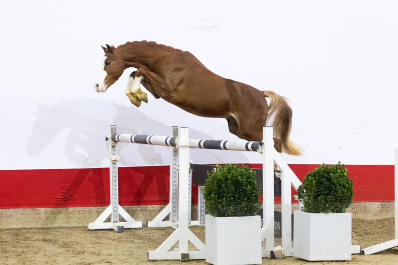Wat een aparte pony is dit. De tweejarige Schimortera’s Lowie meet 1.35m en blinkt uit qua inzet, beweging en goede manier van springen. Dit kan ook een hunterpony worden. Lowie is een Welsh pony afstammend van de schitterende hengst Maxwing Eye Catcher x Manishof’s Iwan.