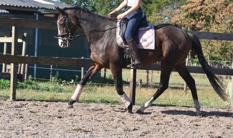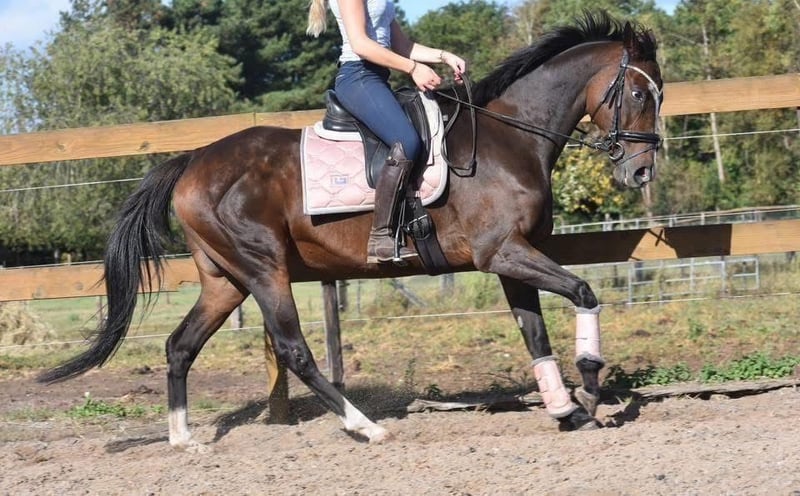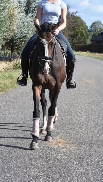 Eyecatcher: superbrave 9 jarige rijpaardmerrie Paddy is een 9 jarige dame van ca. 1.62m hoog, met een afstamming van Leading Light x Caoba by Hernando ( FR) Ze heeft een chique, maar toch degelijke bouw met mooie lange benen en laat zich hier fijn rijden. Wij konden door omstandigheden een lange tijd haar niet rijden en konden zó weer op haar wegrijden, ze is hier superbraaf. Daarbij heeft ze een zacht mondje en reageert ze fijn op de hulpen. Een zware hand is bij haar absoluut niet nodig maar ze is hier ook niet te gevoelig of te rillerig. Paddy is hier verkeersmak, gezond en vrij van gebreken. Voor de fokkerij is ze eveneens zeer interessant! Verder is ze ontzettend sociaal in de groep, de omgang en op stal. Is onlangs door de tandarts behandeld, in bezit van een recent rapport. Prijs € 6450,- incl merkzadel en dekje