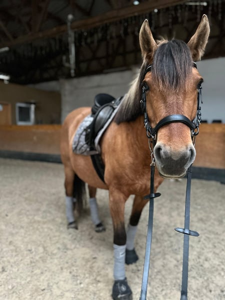 We offer a loving Fjord mix mare for sale. Born in 2014, she has a pleasant height of about 153 cm and is excellent for leisure activities. Kathi is absolutely well-behaved and very people-oriented. She is ideal for trail rides, groundwork, knows some basic dressage work in the arena, and can also jump a small jump. Children should be a bit more secure in the saddle, as she can be a bit lively at times. If you are looking for a loyal companion for unforgettable adventures, please feel free to contact us! We look forward to your inquiry and to introducing you to this wonderful mare.