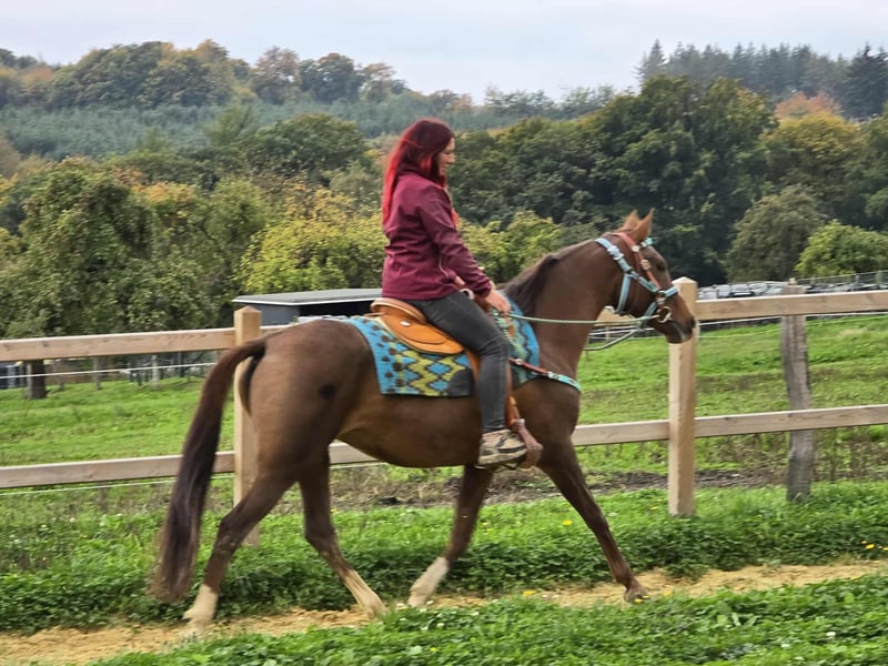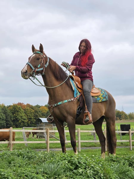 Leisure Mare - Mix Mare for Leisure and Trail Riding* *Age*: 12 years, ridden *Height*: approx. 1.55 m *Equipment*: E-pass, microchip, and veterinary check available *Price*: €5400 A beautiful mare that is ideal for trail and leisure riding. She is a versatile leisure horse, suitable for both English and Western riding. She has a wonderful, balanced temperament and feels comfortable in a herd, but also does well in a stable. ### *What Makes Her Special:* - Used to open stable and herd living; box living is also not a problem - Ideal for leisure and trail riders - Very balanced and uncomplicated to handle *Interested?* Feel free to call us at *0171-4001968* (daily from 8 AM to 8 PM). *Please no emails or WhatsApp, only calls!* *Additional Information:* - Accessories and transport can be organized at a low cost. - Our farm shop offers a small selection of used Western saddles. - *Installment payments are not possible.* *Customer Service:* - Every customer receives a contractually guaranteed *three-month exchange right.* - A test ride with us is possible, so you can get to know your dream horse. For €35, you can ride, have her ridden for you, go for a walk, or more. If desired, you can also test a second horse for €25. This amount will of course be deducted from the purchase price of a horse on the same day. *Special Features:* - If picked up immediately with a horse trailer, you will receive *a discount of €100.* - We conduct the sale with a transparent test ride to ensure it is the right horse for you. *Legal:* - We are the sole and unrestricted owners of the images; the image rights are with us. *Unauthorized use of the images is prohibited.* - Please note that this is a living horse. Our information is based on the impressions of the caretaker and does not constitute guaranteed characteristics. - Advertisements will be deleted immediately once the horses are sold. *Interested?* Feel free to call us at *0171-4001968* (daily from 8 AM to 8 PM). *Please no emails or WhatsApp, only calls!*