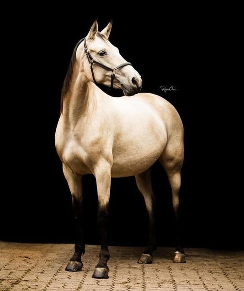 German noble blood / Shagya-Arabian • Buckskin • Foaled in 2014 • Approx. 16.1 hh • Distance & Leisure Riding Isabeau is a stunning, large-framed and expressive mare owned by the Al Samarraie family (Samarrastud). She impresses with her noble appearance, strong presence, and charming personality. In handling, she is exceptionally sweet, gentle, and people-oriented – she seeks contact, enjoys attention, and wants to please. Under saddle, she proves to be well-behaved, sensitive, and always eager to do her best. After several years in endurance riding, she recently completed six weeks of classical riding training for reactivation and showed great motivation throughout. Isabeau has competed internationally in endurance riding up to 75 miles (120 km), ridden by both youths and junior riders – she is familiar with different riders and environments. She requires a confident, calm, and empathetic rider who can lead her clearly but lovingly. In the hands of a rider with feeling and assertiveness, she can reach her full potential. ⸻ 💫 Character • Gentle, attentive & affectionate • Loyal, patient & people-focused • Temperamental & honest • Social & herd-compatible – loves company • Not fond of being alone in the terrain, but absolutely reliable with company • Friendly in handling, suitable for children & teenagers to ride ⸻ 🏇 Performance & Training • Successful in endurance riding (CEI 1*), with international placements • Multiple top 10 finishes (including 5th & 6th place over 100 km) • Active in international endurance sport from 2023 to 2025 • Recently completed classical riding training (6 weeks) for gymnastics and further education • Confident in the terrain, sure-footed & enduring ⸻ 👑 Breeding • Verband Premium Mare • German noble blood / Sire: Verband Premium Stallion – Performance-tested Shagya Arabian / Dam: Verband Premium Mare • Color: Buckskin • Foaled in 2014 • Approx. 16.1 hh • Successfully covered and dam of a 3-star foal / Verband Premium Mare (Izabella al Samarra – last picture) • Loving, caring dam with strong social behavior ⸻ 🌹 Special Features Isabeau is a true heart horse – delicate, sensitive, yet strong in character. She longs to belong, to be part of a herd and a human’s life. Ideal for riders seeking a gentle, characterful mare – as a leisure and trail horse, for endurance riding, or as a valuable broodmare. She is NOT a desperate sale and is only looking for the best home!