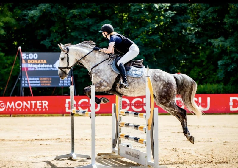 Klacz do wprowadzenia w sport - Donata Oferuję klacz, która doskonale sprawdzi się jako koń do wprowadzenia w sport. • Zdałam na niej SOJ (potrafi elementy do ZOJ jak ustępowania, wężyki, łopatki, lotne zmiany nogi) • Zdana licencja. • Wprowadziła mnie w konkursy po jeździe na kucyku. • 7 lat w moich rękach, obecnie z powodu braku czasu we współdzierżawie, kupiona od hodowcy • Dała zdrowego źrebaka. Możliwości sportowe: • Treningowo bez problemu skacze parkury 120 cm, pojedyncze przeszkody do 130 cm. • Starty P klasa, w regularnym treningu Charakter i zachowanie: • Bezproblemowa przy ładowaniu do przyczepy i transporcie. • Bardzo spokojna podczas zabiegów pielęgnacyjnych (nigdy nie wykazywała agresji wobec człowieka). • Jeżdżę dużo na niej w tereny sama, jak i z innymi końmi przyzwyczajona do psów • Klacz delikatna, pewna w parkurze, idealna do wprowadzenia mlodego jezdca w zawody Cena do negocjacji.
