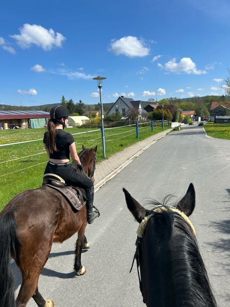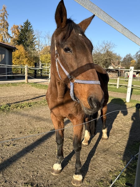 Stute sucht liebevolles 5-Sterne-Zuhause Schweren Herzens suchen wir für unsere ca. 17-jährige Stute ein neues Zuhause, da wir ihr leider nicht die Aufmerksamkeit schenken können, die sie unserer Meinung nach verdient. Sie ist etwa 1,60–1,65 m groß und stammt vermutlich ursprünglich aus dem Trabersport. Sie kam aus nicht so schönen Verhältnissen zu uns – alles Weitere erzählen wir sehr gern persönlich. Unsere Stute ist sehr zutraulich, dabei dem Menschen gegenüber anfangs etwas skeptisch, was sich jedoch schnell legt. Sie zeigt sich absolut unerschrocken, sowohl im täglichen Umgang als auch unter dem Reiter. Besonders hervorzuheben ist ihre absolute Zuverlässigkeit im Gelände – sie geht brav alleine sowie in der Gruppe und lässt sich durch nichts aus der Ruhe bringen. Im Herdenverband ist sie sehr rangniedrig und somit angenehm im Umgang mit anderen Pferden. Sie kann geritten werden, ist jedoch nicht klassisch ausgebildet, was wir auf ihre Vergangenheit als Traber zurückführen. Daher sehen wir sie ideal als Freizeitpferd für entspannte Geländeritte, zum gemütlichen Reiten oder auch als Beisteller bei entsprechender Auslastung. Für sie wünschen wir uns einen Menschen, bei dem sie Priorität hat und der ihr die Zeit, Aufmerksamkeit und Zuwendung schenkt, die sie so sehr verdient. Sie wird ausschließlich in beste Hände und in ein absolutes 5-Sterne-Zuhause abgegeben. Bei ernsthaftem Interesse freuen wir uns sehr über eine persönliche Nachricht oder einen Anruf unter +49 1516 4552438 .