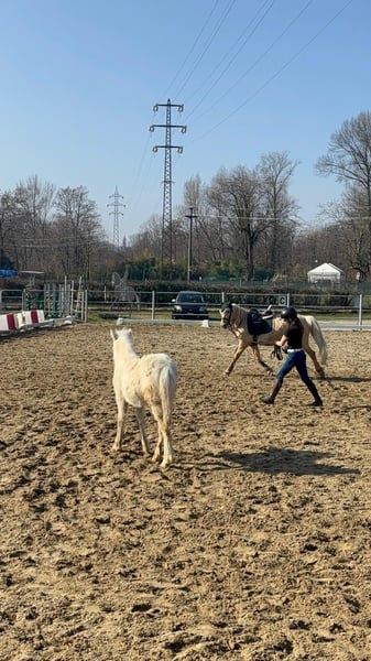 🍀NO PERDITEMPO 🍀 ⭐️ESSENZA D'ORO & il suo piccolo MANGO⭐️ Non sono solo due cavalli. Sono un legame, una storia iniziata insieme. ESSENZA D'oro, 4 anni, 1.45/1.48 al garrese. Bravissima a sella, CAVALLA FREDDA! (ha avuto il puledro a 3 anni), è una cavalla buonissima, dal carattere dolce e disponibile. È sanissima, e in ordine con documenti (ha documenti italiani APA, NON HA IL CERTIFICATO AMERICANO) e coggin test. Il suo puledro Mango, 3 mesi, è già super bravo: si lascia spazzolare, coccolare e gestire con serenità. È curioso, equilibrato e molto affettuoso. Vengono venduti esclusivamente insieme. Cerchiamo per loro una famiglia consapevole, presente e capace di donare amore e stabilità, perché meritano una casa vera. No curiosi, no affaristi, no perditempo. Solo persone seriamente interessate e responsabili. POSSIBILITÀ DI TRASPORTO IN TUTTA ITALIA Zona Bergamo Per ulteriori informazioni 3917059140. (NON RISPONDO A MESSAGGI)