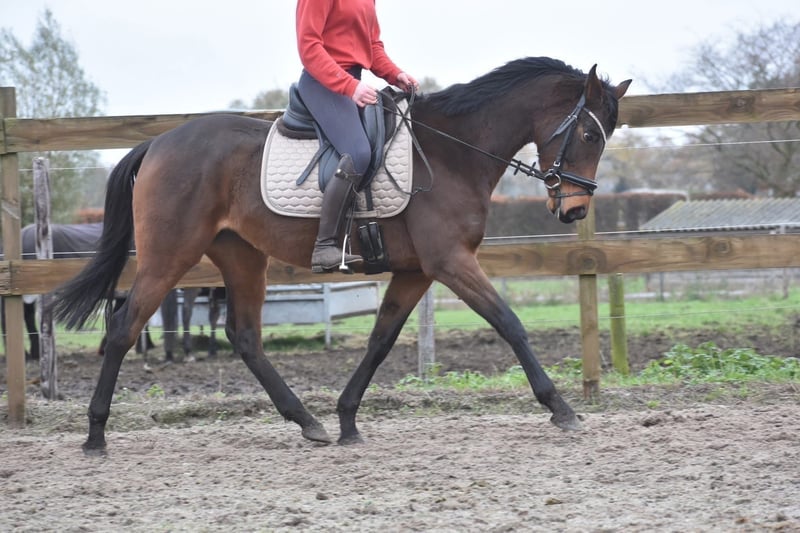 Braaf aangereden, goed bewegende, grote E merrie Hier is Yvy, een prachtige jonge dame van 4 jaar oud met een stokmaat van ca. 1.55m. Haar afstamming is Doyen x Little Nugget. Ze heeft een chique, elegante bouw en weet zeker de aandacht te trekken zodra je de stallen binnenloopt. Ze heeft een ontzettend lief en eerlijk voorkomen. Ivy heeft 3 fantastische gangen en is daarmee geschikt voor meerdere takken van de sport. Ondanks haar jonge leeftijd pakt Yvy het werk hier heel goed op. Ze werkt graag samen met haar ruiter en doet haar best om alles zo goed mogelijk te begrijpen. Momenteel wordt ze bij ons dressuurmatig en recreatief doorgereden en laat ze daarbij een fijne instelling en veel potentie zien. Ze is geheel vrij van gebreken. Is onlangs door de tandarts behandeld, in bezit van een recent rapport. Prijs 3950- incl. merkzadel en dekje Ivy is incl. bloedafname goedgekeurd voor de recreatie.