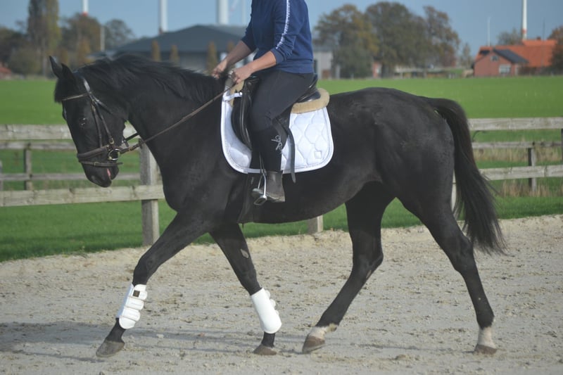 Bardzo uległa, prawie 4-letnia klacz o wzroście 1,65 m. Jest spokojna i cierpliwa w obsłudze, łatwo się na nią wsiada i odjeżdża, nie jest łatwo ją wystraszyć. Jest dobrze przyzwyczajona do ruchu drogowego i nie ma żadnych wad. Grzeczna u kowala i dentysty. Po więcej informacji lub wideo proszę samodzielnie napisać lub zadzwonić pod numer 0031645719488.