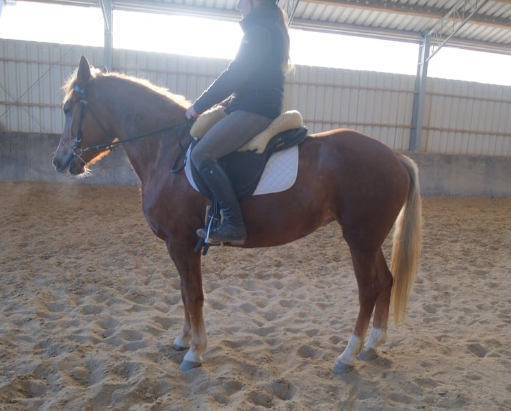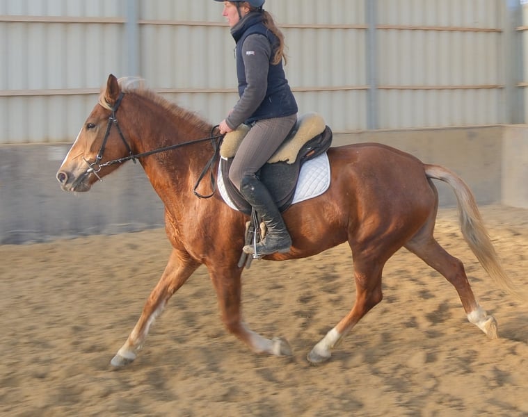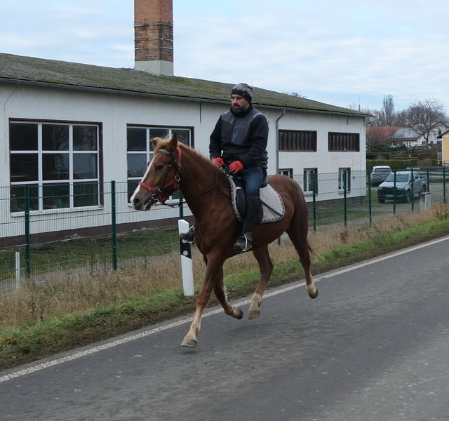 Bewegungsstarke,fleißige und sehr menschenbezogene kleine Warmblutstute. Liesa ist sehr gut in allen Gangarten auf dem Platz und in der Halle geritten. Weiterhin ist sie problemlos allein im Gelände und Straßenverkehr geritten. Geländereiten,Western,Schulbetrieb Sicher im Straßenverkehr und Gelände. 6 Jahre, 154cm Bei Interesse bitte anrufen, keine Mail! Für eventuell auftretende Fehler in der Beschreibung gilt keine Gewähr! Tel.: 0173-3843407 Da es sich um ein lebendes Tier handelt, sind dies subjektive Eindrücke des Anbieters und keine zugesicherten Eigenschaften des Tieres! Ständig schöne Fahr-u.Freizeitpferdesowie neue Kutschen verschiedener Modelle preiswert im Angebot. Anschrift Stall: 99628 Buttstädt, Oberwendenstraße 39
