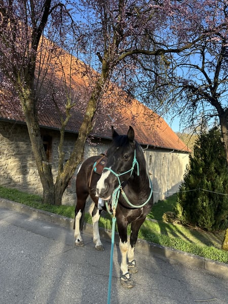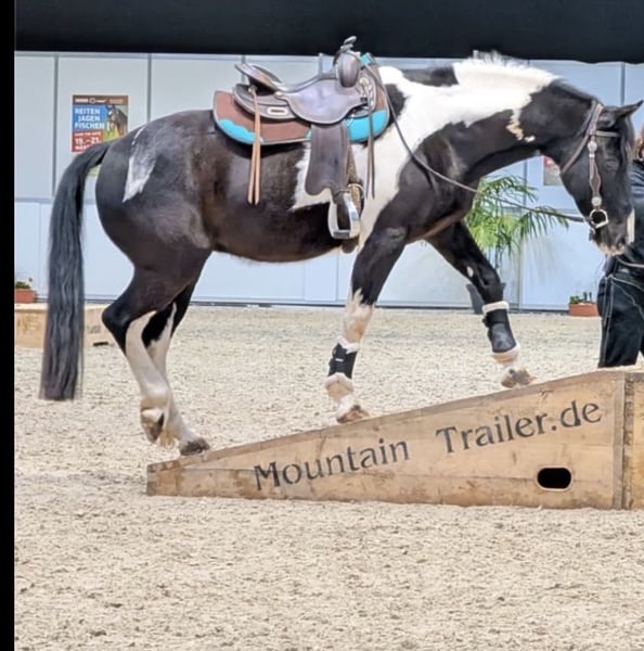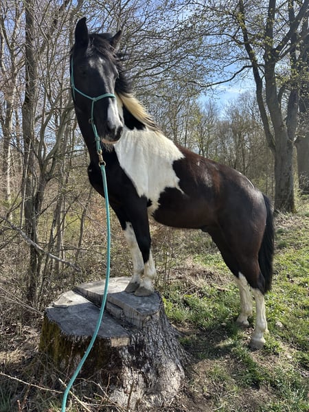 Looking for a new home for my Joker For my “MC Tommy Lee,” also known as Joker, I am seeking a new owner. He has been in my possession since 2020. He is a stunning pinto gelding with a height of 154 cm. Joker combines exceptional potential with strong willpower, and with the right person by his side, anything is possible. He is currently in training, focusing on trail riding and outdoor terrain, and in March, he proved that he can also perform well in front of a large audience at the Reiten-Jagen-Fischen fair. He requires daily training and stimulation, as well as a person who can provide him with confidence and stability. He has a lot of untapped potential and could be used in various disciplines later on, whether trail riding, show jumping, or endurance. He is in excellent health; his teeth were checked just last week. He is barefoot (wears shoes in the terrain). Next week, he will be examined again by the physio/osteopath and will then be ready for his new home. Joker will only be sold if everything fits 100%. Ideally, he should be kept with geldings and will not be sold into a box stall environment. Currently, he stays in a box at night and on paddock or summer pasture during the day. He is not an emergency sale, and we are in no hurry. If desired, his entire equipment can be included, with the price to be negotiated separately. Key facts: - Not suitable for beginners or children - Gelding (confirmed in passport, born 2016) - 154 cm - Healthy and sound - Currently used for leisure riding - Still in training until May 3rd - Farrier- and loading-friendly Upon request, a pre-purchase veterinary examination (AKU) can be arranged; the veterinarian is at the buyer’s choice. He can be viewed and trial ridden at any time by arrangement. A trial ride fee of €30 applies (which will be deducted from the purchase price). Joker can also remain at his current stable or have his training extended/advanced if desired by the new owner. I am looking for a new owner who will welcome my Joker into their family, see him for who he is, provide him with security, and never treat him unfairly. He is not available for installment payments, and he will not be sold to beginners or children. If interested, please send me a private message with a brief introduction. 😊 Thank you! Additional pictures and videos available upon request. Location: Lucky Ranch – 37351 Bickenriede