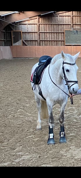 Con mucho pesar, busco un hogar amoroso y permanente para mi caballo de 13 años, Jerardo. Jerardo mide aproximadamente 1,49 m y es un auténtico tesoro en el manejo. Es muy tranquilo, sociable con las personas y también apto para jinetes menos experimentados o inseguros. Siempre se muestra valiente y confiable. Es un caballo con ganas de aprender, que disfruta trabajar y no solo quiere estar parado. También realiza pequeños saltos de manera tranquila y motivada. Lo veo como un caballo ideal para una joven o un jinete de ocio, con aspiraciones, ya sea para disfrutar de paseos relajados o para participar en alguna competición. Para mí, es muy importante que en su nuevo hogar reciba mucho ejercicio diario y que se le mantenga en condiciones adecuadas. Con gusto puedo enviar videos de monta. Si está interesado en serio o tiene alguna pregunta, no dude en contactarme. ¡Primero el lugar, después el precio! Un cordial saludo