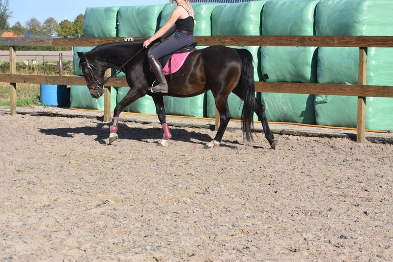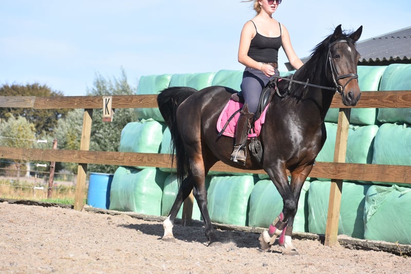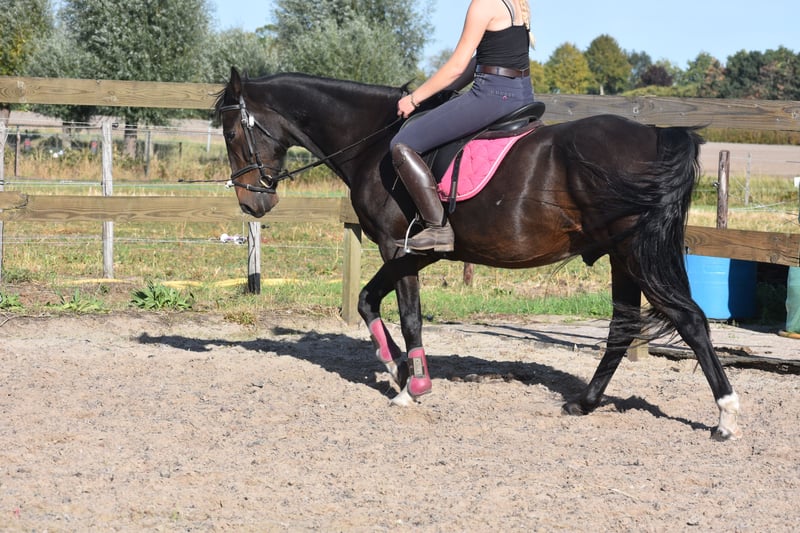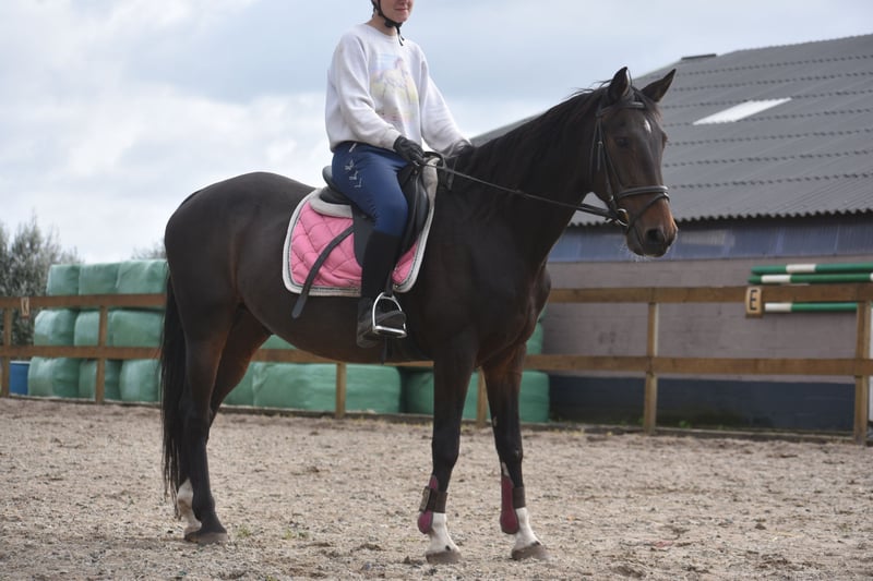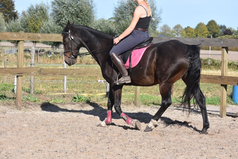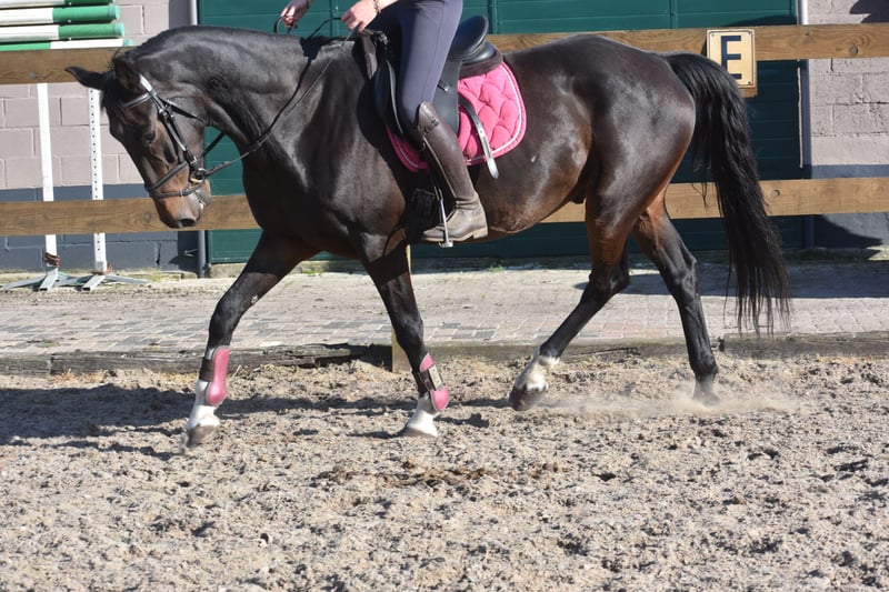 Farmer’s Pride Jester is the pride of his breeder, he is a horse with a golden character! He is approximately 156 cm tall and has already gained experience in a riding school at a care facility. Jester comes with a recent inspection report including a blood sample, which confirms his approval for sports! He has a complete pedigree of Rayo X Perrybridge Touch and Go x Joey. He is suitable for a less advanced rider, but he offers the experienced rider more than enough challenge to achieve a lot! Suitable for both sports and recreational riding. Price 3950,- including a branded saddle and saddle pad.