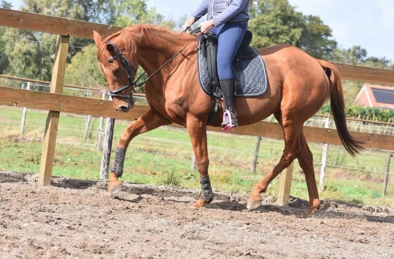 Super super brave, lieve rijpaardruin Oh ‘Herewego is de officiele doopnaam van deze ontzettend lieve ruin. Omdat ie zo lief is dat je hem wel op zou willen eten en hij zelf best wat meer koekjes mag om iets voller te zijn, noemen we hem Cookie. Cookie is vanaf het begin hier een schat van een paard. Zowel in de omgang als in de trailer, op straat , op stal en in de wei. Hij kan hier bereden worden door beginnende ruiters en loopt ruim genoeg om de gevorderde uitdaging te bieden. Ca 160 m hoog. Geen stalgebreken. Cookie heeft een volle afstamming van Medaaly x Masamba. Hij is geboren 18 april 2009. In bezit van een zeer recent keuringsrapport inclusief bloedafname waarbij hij is goedgekeurd. 3950,- incl merkzadel en dekje