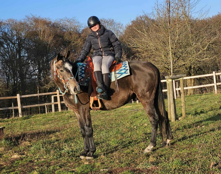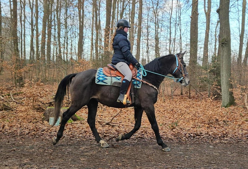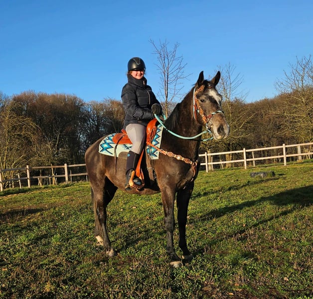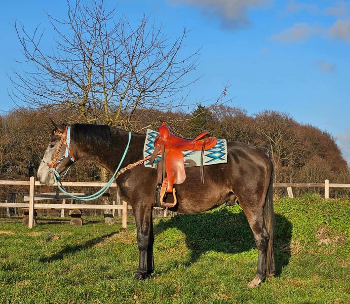 Baro – Apfelschimmel Wallach, lieb, aufgeschlossen & lernfreudig Alter: 4 Jahre (2022 geboren) Stockmaß: ca. 1,60 m Preis: AKU: vorhanden ✨ Beschreibung: Baro ist ein wunderschöner Apfelschimmel-Wallach mit einem sehr freundlichen, offenen Wesen. Er zeigt sich im täglichen Umgang brav, menschenbezogen und besonders verschmust. Als junger Wallach ist er neugierig, aufmerksam und dabei stets angenehm im Handling. Er ist bereits angeritten und möchte seinem Reiter gefallen. Baro arbeitet motiviert mit, zeigt sich lernfreudig und bringt eine positive Einstellung zur Arbeit mit. Trotz seines jungen Alters ist er unkompliziert. Ein junger Partner, der bereit ist, gemeinsam mit seinem Menschen die Welt zu entdecken. 🐎 Perfekt für: Reiterinnen und Reiter, die einen freundlichen, ehrlichen und motivierten Jungwallach suchen. Geeignet für Freizeit, weitere Ausbildung und vielseitige Nutzung. Ideal für Menschen, die Freude daran haben, ein junges Pferd weiter zu fördern. 🩺 Unsere Pferde werden regelmäßig: – entwurmt – vom Schmied betreut – osteopathisch kontrolliert 🛍 Hofladen: Westernsättel, Trensen & Zubehör 🚛 Transport und Equipment auf Wunsch günstig organisierbar Unser Service: ✅ 3 Monate Umtauschrecht ✅ Proberitt: 35 €, jedes weitere Pferd 25 € (beim Kauf am selben Tag angerechnet) ✅ 100 € Sofort-Rabatt bei Abholung/Transport am gleichen Tag ✅ Persönliche & ehrliche Beratung 📞 Anfragen bitte ausschließlich telefonisch: 0171 – 4001968 🕗 Erreichbar täglich von 8–20 Uhr ⚠️ Keine E-Mail oder WhatsApp ⚠️ Alle Angaben ohne Gewähr