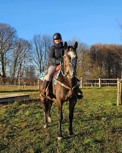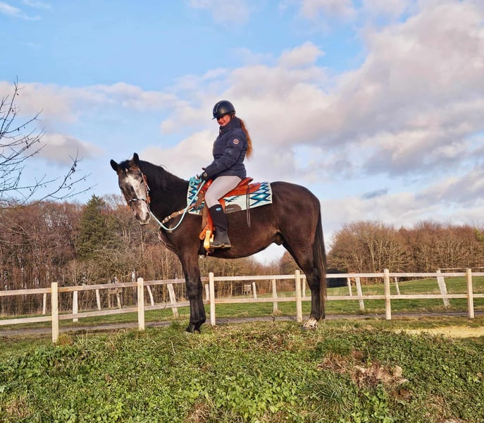 Baro – Poney bai, hongre, gentil, sociable et curieux d'apprentissage Âge : 4 ans (né en 2022) Taille : environ 1,60 m Prix : AKU : disponible ✨ Description : Baro est un magnifique hongre bai avec une robe d'apfelschimmel, doté d’un caractère très amical et ouvert. Il se montre sage, proche de l’humain et particulièrement câlin au quotidien. En tant que jeune hongre, il est curieux, attentif et toujours agréable à manipuler. Il a déjà été monté en selle et souhaite faire plaisir à son cavalier. Baro travaille avec motivation, montre une grande soif d'apprendre et adopte une attitude positive envers le travail. Malgré son jeune âge, il est facile à gérer. Un jeune partenaire prêt à découvrir le monde avec son humain. 🐎 Parfait pour : Des cavalières et cavaliers à la recherche d’un jeune hongre sympathique, sincère et motivé. Adapté pour les loisirs, la formation continue et une utilisation polyvalente. Idéal pour ceux qui aiment continuer à développer un jeune cheval. 🩺 Nos chevaux sont régulièrement : – vermifugés – soignés par le maréchal-ferrant – contrôlés osteopathiquement 🛍 Boutique : Selle western, bridons & accessoires 🚛 Transport et équipement disponibles à prix avantageux sur demande Notre service : ✅ 3 mois de droit d’échange ✅ Essai à 35 €, chaque cheval supplémentaire à 25 € (déduit lors de l’achat le jour même) ✅ Réduction immédiate de 100 € en cas de retrait ou transport le même jour ✅ Conseils personnalisés et honnêtes 📞 Pour toute demande, uniquement par téléphone : 0171 – 4001968 🕗 Ouvert tous les jours de 8h à 20h ⚠️ Pas d’e-mails ni de WhatsApp ⚠️ Toutes nos informations sont données sans garantie