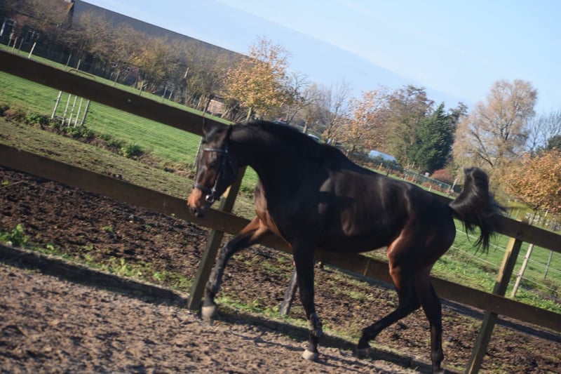 Bloedmooie, SUPERbrave, correcte rijpaardruin Deze geboren Fransman heet Daytona Diamond. Zijn vorig baasje gunde hem ons . Het is werkelijk een plaatje en dat van binnen en van buiten! Het is een geboren galopeur. Hij heeft nooit gekoerst en is nooit op een renbaan geweest. Hij heeft 3 zeer ruime, gedragen gangen. Is voor meerdere takken van de sport geschikt. Ons inziens ook braaf genoeg voor de recreatie! We konden bij binnenkomst meteen op hem wegrijden. hij is 4 jaar oud en ca 165 m hoog en heeft een volle stamboom van : Cloth of Stars x Montjeu x Eagle Eyed. Diamond is wat je noemt een bloedmooi paradepaardje die wacht op een lieve baas waar hij een geweldige toekomst mee gaat hebben! Zijn vorig baasje wil graag contact houden met een nieuwe eigenaar en ze schrijft : “Diamond is Leergierig, lief, een knuffelpaard, mens+ paardgericht, sociaal en braaf en hij houdt van poetsen en aandacht. De reden van verkoop is dat 4 paarden toch te veel zijn. Hij verdiend meer aandacht en rijden.” Hij is met buitenrijden hier superbraaf . Hij gaat bij ons in zijn eentje het erf af en hup de straat op , heel nuchter . Is onlangs door de tandarts behandeld, in bezit van een recent rapport. Prijs € 6450,- incl. merkzadel en compleet hoofdstel