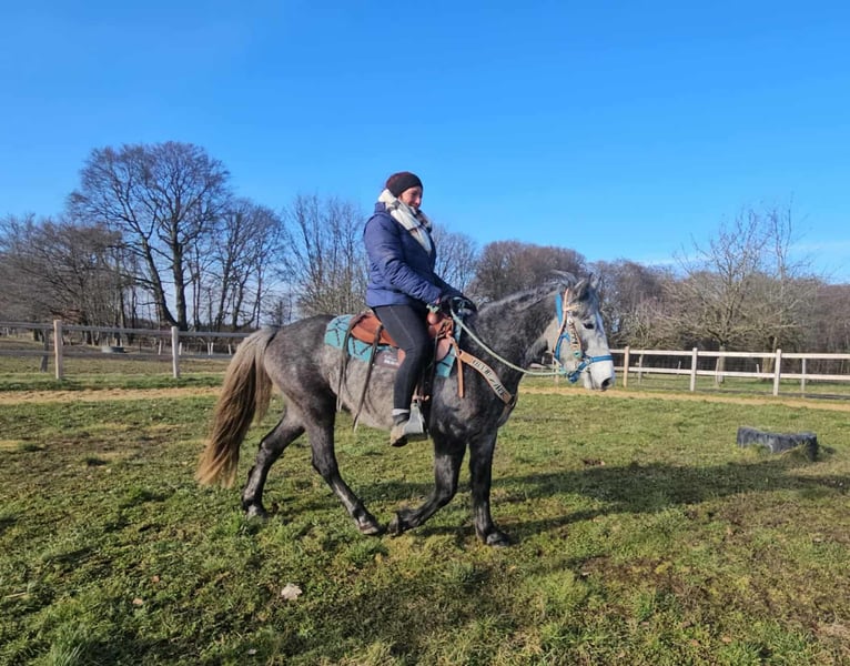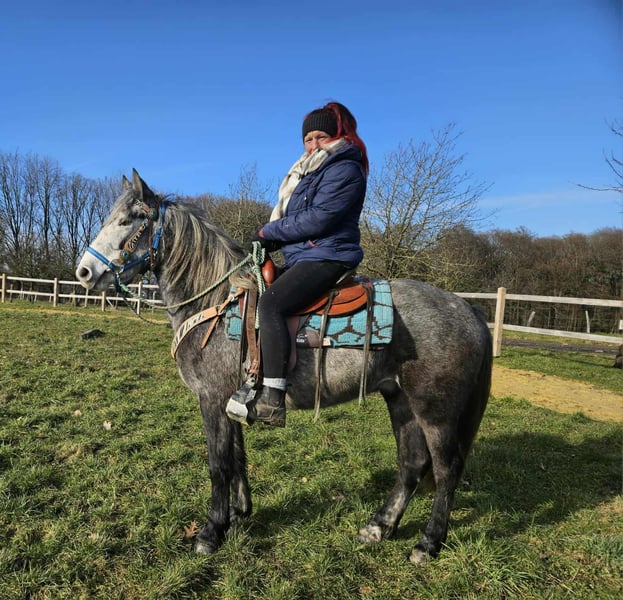 Western-Type Gelding – young, well-behaved & with a great foundation Age: 4 years Height: approx. 14.1 hh (still growing) Price: €4,900 Health certificate: available ✨ Description: This 4-year-old Western-type gelding impresses with his compact, harmonious build and calm demeanor. He is already backed and demonstrates a very good, attentive, and eager-to-learn attitude. For his young age, he has an excellent work ethic. Under saddle, he remains relaxed, makes an effort to do everything correctly, and provides a pleasant riding experience. In daily handling, he is friendly, uncomplicated, and well-mannered. Currently measuring around 14.1 hh, he is still growing – an ideal partner for those wishing to further develop a young horse. A promising young gelding with a solid foundation for leisure riding and further Western training. Suitable for: Riders who enjoy nurturing a young horse. Perfect as a future leisure or Western riding horse. Our horses are regularly: – dewormed – attended to by the farrier – osteopathically checked Farm shop: Western saddles, bridles & accessories Transport and suitable equipment can be organized at a favorable rate upon request. Our services: ✅ 3-month exchange guarantee ✅ Test ride: €35, each additional horse €25 (credited if purchased on the same day) ✅ €100 immediate discount for pickup or transport on the same day ✅ Personal & honest advice Please inquire exclusively by phone: 0171 – 4001968 Available daily from 8 a.m. to 8 p.m. ⚠️ No emails or WhatsApp messages ⚠️ All information without guarantee