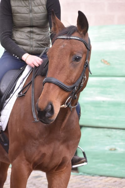 Hier is Yamas, een 5 -jarige ruin met de afstamming Anjaal x Creese. Met zijn sprekende bruine ogen en charmante uitstraling weet hij direct harten te veroveren. Hij heeft een mooi familiemaatje met zijn ca 158 m hoogte. Yamas is een paard met een fijn, nuchter karakter. Hij blijft hier rustig in nieuwe situaties en is niet snel onder de indruk van zijn omgeving. Daarbij is hij niet overdreven voorwaarts, wat zorgt voor een veilig en betrouwbaar gevoel in het zadel. Hij is in bezit van een keuringsrapport inclusief bloedafname, waarbij hij is goedgekeurd voor de sport met perfecte buigproeven! In de omgang, het verkeer, de trailer en in de kudde is Yamas hier nuchter en in de wei en op stal erg makkelijk. € 3950,- Incl. zadel en compleet hoofdstel