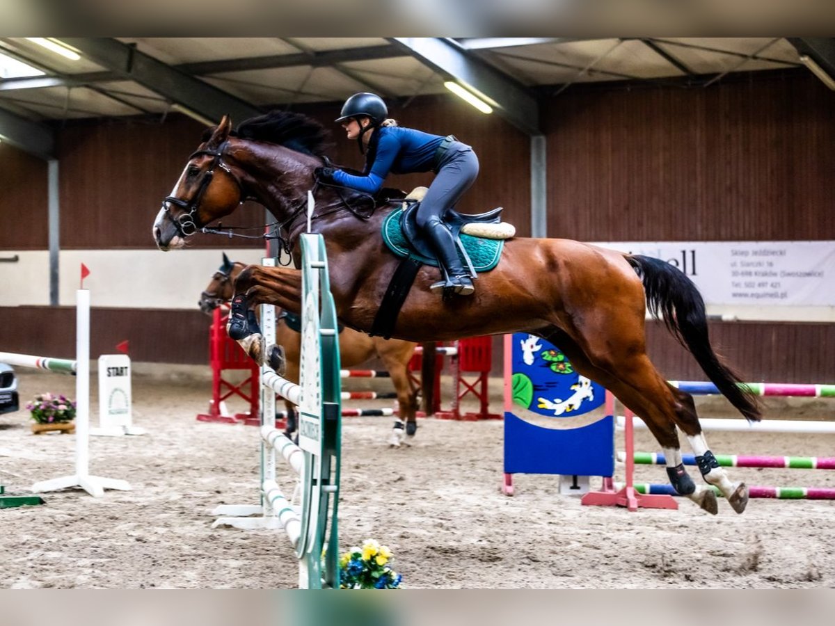 Na sprzedaż bardzo przyjemny wałach, 8 lat, wzrost ok. 176 cm. Po ogierze Salwiusz (linia Quamiro). Koń przygotowany do skoków, startował w konkursach do L1. W domu skacze parkury 110–120 cm oraz pojedyncze przeszkody do 130 cm i nie jest to jego górny limit – ma możliwości na więcej. Gotowy do startów w wyższych klasach. Bardzo dobry charakter – spokojny, przewidywalny, chętny do pracy. Nadaje się dla amatora, „wybacza błędy” i daje dużo pewności w jeździe. Bardzo dobrze ujeżdżony, z dobrym, równym galopem i pięknym ruchem. Lekki i miękki na pysku, bardzo zwinny i skrętny. W skoku szybki, dynamiczny, z tendencją w przód – dobrze niesie przez parkur i fajnie zabiera na przeszkody. Bardzo dokładny, skacze zarówno z bliska, jak i z daleka, nawet przy mniej pewnym jeźdźcu potrafi „uratować” sytuację. Koń skacze wszystko, od zawsze. Nigdy nie odmówił skoku, mam go od 2 latka. Koń zadbany, cały czas w treningu. Nada się również do wkkw - był testowany na przeszkodach crossowych, skakał wszystko. Po więcej zdjęć i filmów zapraszam do kontaktu. Lokalizacja: Sentio Equestrian Kontakt: 516608686