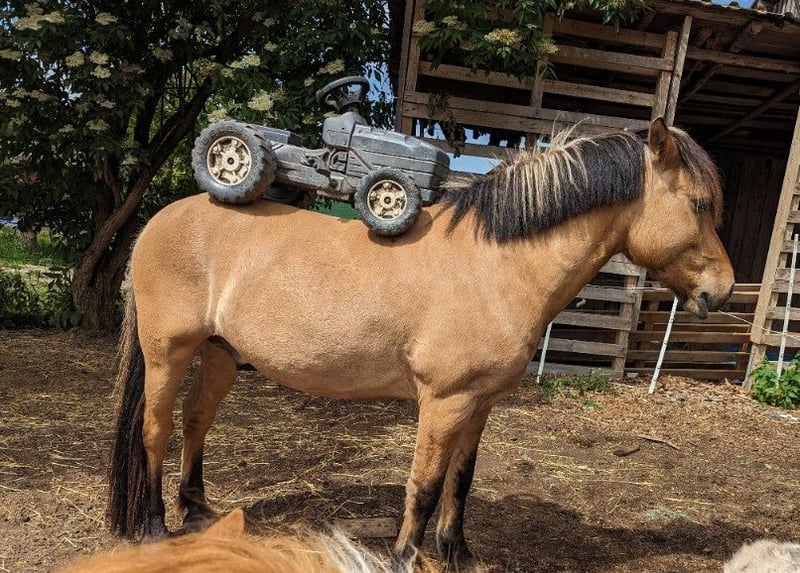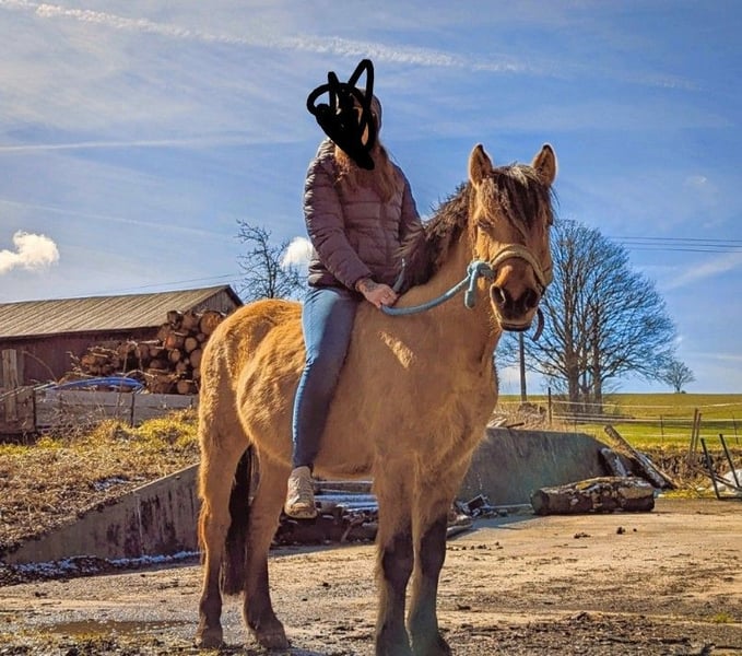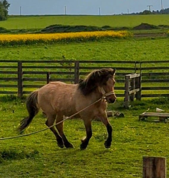 Zum Verkauf steht ein 8-jähriger Norwegermix mit einem Stockmaß von ca. 1,38 m. Er ist ein vielseitiges, robustes Freizeitpferd mit klarem Kopf. Er lebt aktuell im Offenstall und ist absolut herdenverträglich – sowohl mit großen als auch mit kleinen Pferden. Im Gelände zeigt er sich zuverlässig, egal ob alleine oder in der Gruppe. Auch im Straßenverkehr ist er absolut sicher unterwegs – selbst große Maschinen wie Harvester etc. bringen ihn nicht aus der Ruhe. Er ist für jeden Spaß zu haben, brav im Umgang und zeigt keinerlei Unarten – kein Buckeln, kein Steigen. Er hört gut auf Stimmkommandos und kennt Dressurarbeit, es wurde viel Bodenarbeit gemacht. Kinder können ihn grundsätzlich reiten. Man sollte jedoch beachten, dass er einen typischen „Ponydickkopf“ haben kann – bei unsicheren oder sehr kleinen Kindern kann es passieren, dass er einfach stehen bleibt und frisst. Er wurde bereits eingespannt, wurde aber diesbezüglich nicht weiter ausgebildet. Auch Handpferde mitzuführen ist ihm vertraut oder in einer Gruppe mit eingespannten Pferden zu laufen. Mit seinen 1,38 m deckt er auch größere Reiter gut ab (Reiterin 1,70 m). Er ist ein idealer Partner für Freizeitreiter, die ein unkompliziertes, nervenstarkes und vielseitiges Pferd suchen. Er kennt es zu springen. Er läuft aktuell barhuf, kennt hufschuhe wurden jedoch die letzten Jahre nicht benötigt da Huf sehr gut nachwächst. Besichtigung nach Absprache jederzeit möglich. Probereiten bei ernsthaftem Interesse. Ein Teilmaßsattel, Sulky sowie Einspanngeschirr sind gegen Aufpreis erhältlich, ebenso Trense und weiteres Zubehör. Bei Interesse gerne melden Videos auf Anfrage