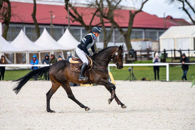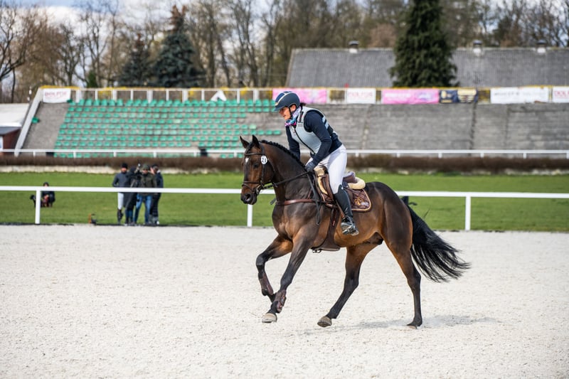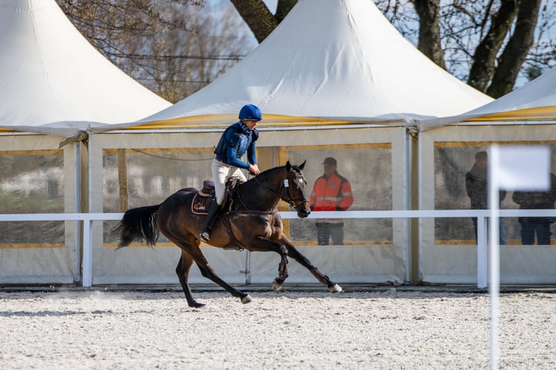 Milagro AA, sired by Huncwot out of Mandala by Dionizos, is an Anglo-Arabian stallion born on February 26, 2020. His measurements are 164-186-21 cm, with a conformation score of 78 points. This young, noble stallion from the Małopolska breed exhibits a well-structured build (special attention should be paid to his large, correct hooves). He moves well in all three basic gaits and demonstrates excellent technique and strength in jumping. His jumping is consistent, as confirmed by high scores at every competition. Milagro AA has a very good character and a balanced temperament. He is registered in the Małopolska Breed Resource Conservation Program. **Major Achievements of Milagro AA:** - Winner of the Saddle Trial in the Field Test Group C for Małopolska Breed Horses, Bogusławice, April 7-8, 2025, with an overall score of 7.3 (qualifying for a lifetime breeding license). - HZR and HZT in Dressage at Łąck, October 20, 2024, rider Marta Dziak-Gierlicz, score in L2 – 64.545%, 2nd place. - HZR and HZT in Dressage at Łąck, October 19, 2024, rider Marta Dziak-Gierlicz, score in L1 – 63.684%, 4th place. - M5 / 4-year-old ZR Elimination / MPMK Qualification for 4-year-old Małopolska Horses, Becker Sport, July 21, 2024 – qualified for the Polish Young Horse Championships, rider Marta Dziak-Gierlicz, final score 70.80% (7.08). - During the IV Open Championship of Noble Breed Horses in Radzionków on July 24, 2023, among 40 horses born in 2020 and 2021 with top jumping pedigrees, he achieved a very high 12th place with an overall score of 8.29 points. The international jury, consisting of Eva Maria Broomer, Christoph F. Röwold, and Roland Metz, awarded him the following scores: type and conformation – 8.00, gallop – 8.17, jumping technique – 8.50, strength – 8.50, final score – 8.29. Eva Maria Broomer commented that Milagro AA possesses a very good ability to clear obstacles in the corridor, has excellent jumping technique, good engagement of the hind legs, and is truly a promising sport horse. - On April 13-14, 2023, he placed 3rd in the Małopolska Breed Young Stallions Qualification for Breeding and Field Training in Racot, with the highest score for corridor jumping – 7.9 points (the highest score achieved by a Group C stallion since the qualification system was established). Other scores: walk – 7.0, trot – 6.9, canter – 6.8, free jumping – 7.9, linear evaluation: build – 7.5, type – 8.0, average score – 7.2. License valid until December 31, 2025. - Vice-Champion of Małopolska Breed Stallions at NCKM in Białka, June 11-12, 2022. - Award from the Polish Research Institute in Balice for the Best Małopolska Breed Stallion. - 2nd place in the two-year-old stallion class at the National Małopolska Breed Horse Championship in Białka, June 11-12, 2022, with an overall score of 82.18 points. **Dam Line:** Milagro AA’s dam, Mandala, by Dionizos out of Mocca by Baryt, bred by Aleksandra Łoj, is a young mare with good, elastic movement in all three gaits, and solid technique and strength in jumping. Besides Milagro AA, Mandala is also the dam of Maximus AA, qualified for PPO in 2024, by Brand Magic. Maximus AA is the winner of the Stallion Qualification for PPO, grandson of Mighty Magic and Heraldik. **Sire of Mandala:** Dionizos, born at SK Walewice, is a modern, sport-type Małopolska stallion. Handsome, noble, with excellent movement. Under saddle, attentive and highly rideable. Winner of the Stallion Performance Test at Bogusławice in 2009, vice-champion of Poland in young horse show jumping in 2011, and Polish young horse show jumping champion in 2012. He is well-blooded, a son of the renowned French stallion Frazes, and a great-grandson of Arkus. He is a half-brother to Diokles, sold to Ireland. **Dam Line of Mandala:** Mocca by Baryt out of Morfina by Emir, is a mare bred by Aleksandra Łoj, scored 81 points in conformation. Mocca passed the mare performance test with a good rating, was Vice-Champion of the 23rd Sitne Exhibition, and placed 2nd in the two-year-old mare class at the 11th NCKM in Białka. She is the dam of: - Marcepan by Huzar, vice-champion of Poland in WKKW in 2016. - Modena by Szkrab, who placed 3rd in France with a score of 7.91. - Monolitos by Huzar, purchased at age two by French WKKW rider Tom Carley, who placed 3rd in the 3-year-old stallion class at the Grande Semaine de Pompadour. Currently, Monolitos is in the stables of Andrew Hoy, an Australian multi-medalist in WKKW. I have videos from dressage competitions, stallion field trials, and free jumping championships.