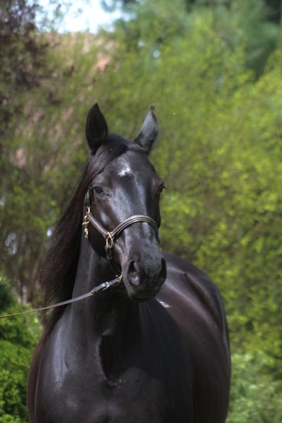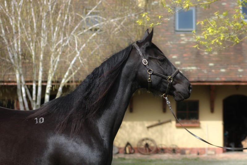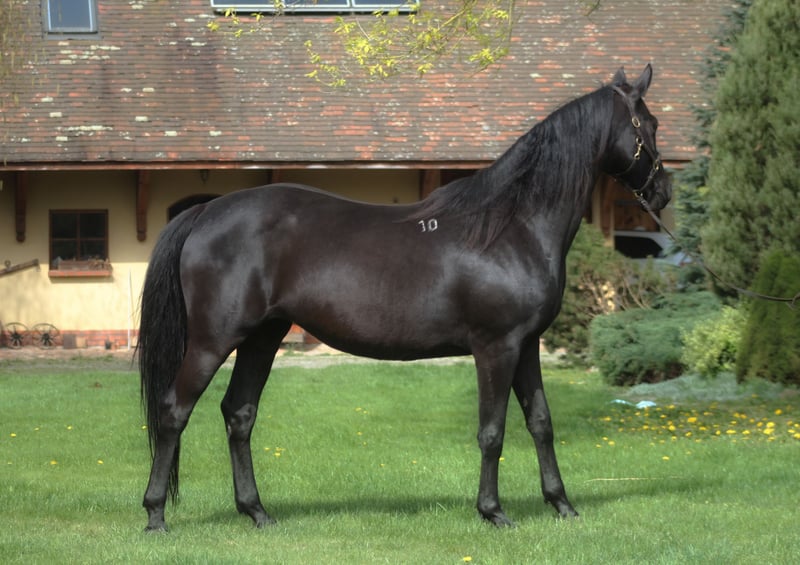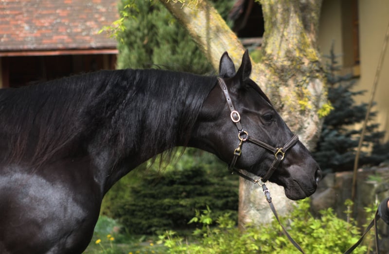 We are looking for a good home for our lovely angloarabian mare. Homozygous black confirmed by genetic testing, bred by SK Walewice state Stud from the best Anglo-Arabian lines. In the pedigree, famous Efekt, Veritas, Vidoc, Huzar, Jalienny AA , english thouroughbreds , highly valued and recognized in the sport of eventing and show jumping. A very feminine mare, beautiful with great flexible and extensive movement. Broken in at the age of 3.5 years, then she was a breeding mare with us Now she is slowly coming back to work under the saddle. The mare is fully healthy, not exploited, after re-training she is fully suitable for saddle, for sports or recreation. Correct conformation, strong straight legs and good hooves. She absorbs feed very well, a fantastic caring mother, she gave birth to only homozygous blacks with us. The mare has a very good pro-human character, which she passes on to her offspring. Trouble-free and very polite in everyday handling, ultrasound examination, vet, blacksmith, etc. Has a breeding license, registered in the main studbook. Very well cared, vaccinated, dewormed. Every day on green big fields with the herd. Located 50 km from PL/D border. Price + 8% VAT Transport can be arranged.