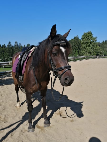 Im Auftrag: Zum Verkauf steht der liebe Wallach Kabier, geboren 2014, mit einem Stockmaß von ca. 155 cm. Er wurde früher regulär geritten, steht jedoch aufgrund einer längeren Krankheit der Besitzerin in den letzten Jahren ausschließlich auf der Koppel, weshalb Probereiten aktuell nicht möglich ist. Kabier ist im Umgang äußerst brav, geht barhuf und war bisher nie krank – ein robustes und unkompliziertes Pferd. Er eignet sich ideal für jemanden, der ihn behutsam wieder ins Training holen möchte. Sollte Kabier in Beritt gehen, steigt der Preis entsprechend. Bei Interesse oder Fragen freue ich mich auf eine Nachricht und stell gerne den Kontakt zur Besitzerin her.