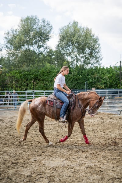 Stute, Kreuzung Quarter Horse x Appaloosa. 11 Jahre alt – 1,50 m Stockmaß. Geeignet für Ausritte und auch anspruchsvolles Trekking, sowohl alleine als auch in der Gruppe. Einfach im Umgang und zuverlässig.