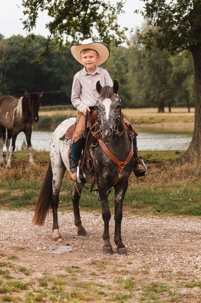 Unser liebe Puzzle ist der Inbegriff eines Kinderponys. Sie hat das Aussehen und das Wesen, das man sich wünscht. Sie wurde bei uns geboren und nichts ist ihr zu viel. Sie ist äußerst geduldig und lässt sich von nichts beeindrucken. Mit unserem Sohn hat sie bereits viele schöne Momente erlebt. Unser Sohn bevorzugt Westernreiten, besucht aber auch regelmäßig den Dressurunterricht im Ponyclub. Für sie ist das Tragen im Anhänger ganz selbstverständlich. Wir haben auch schon mit ihr im Kutschwagen geübt, was sie brav macht. Sie war sogar schon einmal bei einem Western-Wettbewerb dabei, könnte aber auch für Dressur, Kutschfahrten oder Springen geeignet sein. Ihr Vater stammt aus einer bekannten englischen Springponylinie. Bei Ausritten ist sie sehr brav und kann sowohl vorne als auch hinten im Verband laufen. Es fällt uns wirklich schwer, uns zu entscheiden, aber da wir auch ihre Mutter haben, sind zwei Ponys einfach zu viel für unseren Sohn. Puzzle verdient es, eine eigene Reiterin oder einen eigenen Reiter zu bekommen, um noch viele weitere Abenteuer zu erleben!