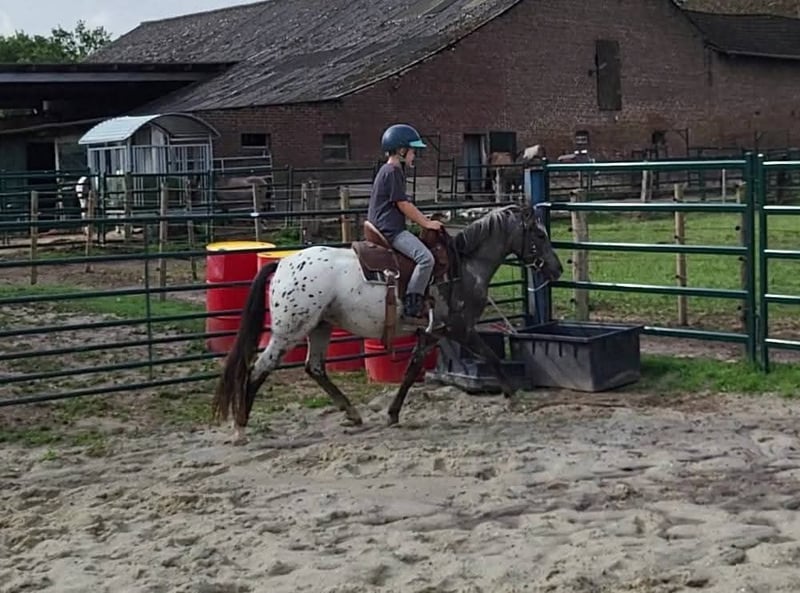 Onze lieve Puzzle is de kinderpony bij uitstek. Ze heeft de looks en het karakter. Ze is bij ons geboren en niks is haar te gek. Super geduldig en nergens van onder de indruk. Ze heeft met onze zoon al een hele hoop plezier beleefd. Onze zoon heeft een voorkeur voor western rijden, maar volgt ook gewoon wekelijks de dressuurles op de ponyclub. Dus trailerrijden is voor haar de normaalste zaak van de wereld. Wij hebben ook al met haar in het tuig geoefend en dat doet ze ook braaf. Ze is zelfs al eens mee op een western wedstrijdje geweest, maar zou ook voor dressuur, mennen of springen geschikt kunnen zijn. Haar vader komt uit een bekende Engelse springsport ponylijn. Op buitenrit is zij heel braaf en kan zowel voorop als achteraan. We vinden het echt heel erg jammer dat we moeten kiezen, maar omdat we haar moeder ook nog hebben zijn 2 pony's gewoon te veel voor mijn zoon. Puzzle verdient het om een eigen ruitertje te krijgen om zo nog veel meer avonturen te gaan beleven!