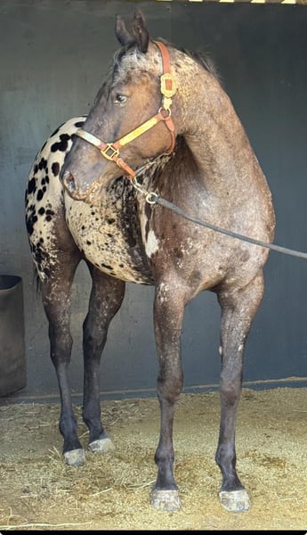 Diese bildhübsche Stute in Appaloosa Optik mit der außergewöhnlichen Black-Blanket-Färbung wurde 2022 geboren und misst aktuell etwa 156 cm. Sie verfügt über einen Equidenpass und besticht durch ihr korrektes Gebäude sowie einen besonders lieben und menschenbezogenen Charakter. Die junge Stute befindet sich noch in der Entwicklung, zeigt sich jedoch bereits jetzt sehr cool, verspielt und lernwillig. Sie ist absolut geräuschunempfindlich, verschmust und zeigt sich im täglichen Umgang sowie bei Tierarzt und Hufschmied stets brav und unkompliziert. Sie kennt sowohl Boxenhaltung als auch Weidegang, ist regelmäßig entwurmt und geimpft und wurde mit viel Geduld und Ruhe ausgebildet. Aktuell befindet die Stute sich im Beritt und geht artig Schritt und Trab unter dem Sattel. Auch an der Doppellonge und bei der Bodenarbeit arbeitet sie motiviert mit. Ihre taktreinen, ansprechenden Gangarten machen sie zu einer interessanten Nachwuchspartnerin für vielseitige Einsätze - sei es im Pleasure, Ranch Riding oder im Trail. Diese junge Dame ist der perfekte Partner für Reiter, die den Weg vom Jungpferd zum verlässlichen Freizeit- oder Turnierpartner gemeinsam gehen möchten. Sie bringt das Potenzial und die Einstellung mit, um ein echter Allrounder zu werden.