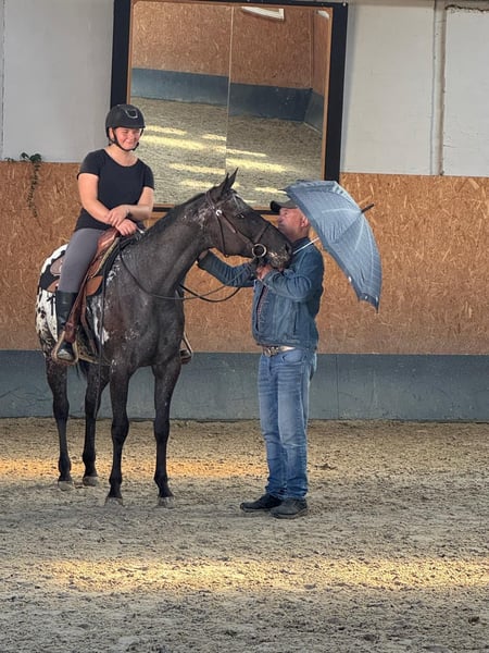 Deze prachtige Appaloosa merrie zonder papier, met de uitzonderlijke Black-Blanket-kleur, werd geboren in 2022 en meet momenteel ongeveer 1,56 m. Ze beschikt over een equidenpas en valt op door haar correcte bouw en haar bijzonder vriendelijke en mensgerichte karakter. De jonge merrie is nog in ontwikkeling, maar toont nu al een heel coole, speelse en leergierige aard. Ze is absoluut geluid- en schrikvast, knuffelig en gedraagt zich altijd braaf en gemakkelijk in de omgang, bij de dierenarts en de hoefsmid. Ze is zowel bekend met box- als weidegang, wordt regelmatig ontwormd en gevaccineerd en is met veel geduld en rust opgeleid. Momenteel staat ze onder het zadel en loopt netjes stap en draf. Ook aan de longe en bij de grondwerktraining werkt ze gemotiveerd mee. Haar ritmische, aansprekende gangen maken haar tot een interessante jonge partner voor veelzijdige inzet – of het nu gaat om Pleasure, Ranch Riding of Trail. Deze jonge dame is de perfecte partner voor ruiters die samen de weg willen bewandelen van jong paard tot betrouwbare recreatie- of wedstrijdpartner. Ze beschikt over het potentieel en de instelling om uit te groeien tot een echte allrounder. De training is inclusief tot november.