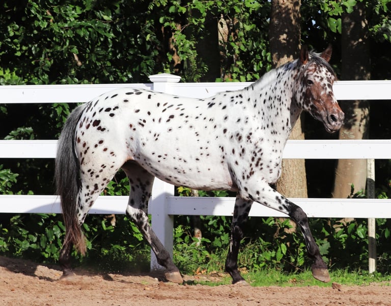 Mit Pixie werden Träume wahr! Pixie sucht ein liebevolles Zuhause auf Lebenszeit. Sie ist eine sehr treue Stute mit einem freundlichen und entspannten Wesen. Sie lernt bisher schnell, ist neugierig, cool und selbstbewusst. Mit anderen Pferden in der Herde versteht sie sich bisher immer problemlos. Pixie ist eine absolut bezaubernde Appaloosa-Stute in umwerfend schöner Farbe, die nur in fürsorgliche Hände abgegeben werden soll. Sie ist vom Herzen her ein Sonnenschein, der viel Vertrauen schenkt, aber auch verspielt sein kann und stets für ein Abenteuer zu haben ist. Sie hat Spaß an der Arbeit, liebt es aber ebenso, geputzt und verwöhnt zu werden. Sie genießt die Aufmerksamkeit ihrer Bezugspersonen und ist bereits gemütliche Ausritte durch Wald und Wiesen gewohnt. Besonders an sonnigen Tagen hat sie Freude am Wasser und plantscht gern. Aufgrund ihres gutmütigen Charakters und dank ihres klaren Kopfes zeigt sie sich trotz ihres jungen Alters bisher schon sehr zuverlässig und gut händelbar. Pixie eignet sich perfekt für Western- oder Freizeitreiter, Wanderreiter und grundsätzlich auch für Wiedereinsteiger in den Reitsport. Mit einem Stockmaß von ca. 1,53m zeigt sie sich bisher neugierig, gelassen und unerschrocken gegenüber alltäglichen Geräuschen wie Traktoren oder Maschinen auf dem Hof. Sie ist ein aufgeschlossenes Jungpferd, das stets neue Dinge lernen möchte. Pixie ist Barhuf unterwegs und kommt bisher gut ohne Hufeisen aus. Pixie ist bereits an Freiarbeit im Rahmen von Natural Horsemanship gewöhnt. Durch ihre ruhige, aufmerksame Art, hat sie schnell die Basics der Freiarbeit gelernt. Freies folgen, oder gezielte Handwechsel nach zu ihrem Menschen, sind für Pixie eine leichte Aufgabe. Wir möchten für Pixie ein neues Zuhause finden, in dem sie sich wohlfühlt, weiterhin gefordert und gefördert wird und die Liebe erhält, die sie verdient. Daher wird sie ausschließlich in gute Hände abgegeben und gegen eine Spritpauschale persönlich in ihren neuen Stall gebracht. Falls gewünscht, kann eine Ankaufsuntersuchung organisiert werden. Telefonisch sind wir unter 01624348386 erreichbar – keine E-Mails. ⸻ Wir nehmen uns für das Probereiten und Kennenlernen gerne viel Zeit, damit alles in Ruhe und ausführlich stattfinden kann. Um sicherzustellen, dass sich nur Interessenten mit ernsthaftem Kaufinteresse melden, erbitten wir einen kleinen Beitrag von 50 €, der beim Pferdekauf selbstverständlich angerechnet wird. Vielen Dank für Ihr Verständnis!