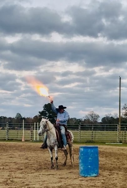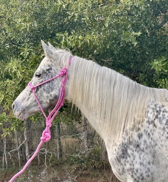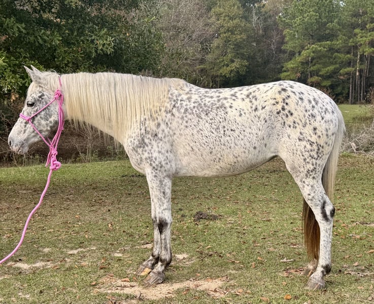 "AVAILABLE ON ONLINE HORSE AUCTION AT www DOT MagicHorseAuction DOT com BIDDING OPEN NOW thru TUESDAY | December 23TH! - BUY IT NOW AVAILABLE! *Final price will be determined on auction site* CONSIGNOR CONTACT INFO: Billy Young 985-514-3203 LOCATION: Kentwood, LA "Sister is a 7 year old Appaloosa mare. She stands 13.3 hands tall. Sister is a cool little horse to ride. She does amazing on trails in the woods or on the highway. She will ride in the front the middle or the back of the trail ride. She is ok with that .She’s just glad to be there , she’s has no problem crossing water , bridges , logs and isn’t scared of wildlife such as hogs , turkeys and deer sister has been hunted off of for over two years now. Sister has a great one hand neck rein she will walk trot and lope both ways. She catches her leads easily . She has a good stop and will back up with no problem. Sister has been shot off of a lot when she was hunted off of , I have been using her as a practice horse for cowboy mounted shooting competition . She is a good little shooting horse and will run right down the middle and stay true and not duck or veer off on the run down. Sister has been pulling the cart for over a month now. She will start and stop the cart with ease. She sure is one pretty buggy horse. She loads in all types of trailers easy she’s easy to wash , saddle , harness , bridle. She will stand good for mounting and getting off of her. I have roped the breakaway dummy off of her a few times with no problem. She is clean legged, no scars, no health issues. She is a clean little mare. If you’re looking for a pretty pretty little mare that’s youth suitable check out Sister.