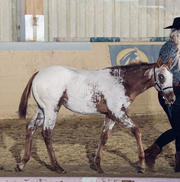 Molly ist freundlich , aufgeweckt und leicht zu Händeln für ihr Alter . Sie hat an dem Bundeschampionat 2025 teilgenommen und war die 2 platzierte der Stutfohlen . Die Maus wird ca 152cm groß , ist doppelt LP/LP . Wir sind mit ihr schon paar mal Hänger gefahren, sie kennt Hufschmied , anbinden putzen aufhalftern usw , Natürlich auch 5 Panel N/N über die Elterntiere , die beide registriert sind im APHC und APHCG . DAM : Charmys Purpel Rose Sire: Cowboys Spoted San