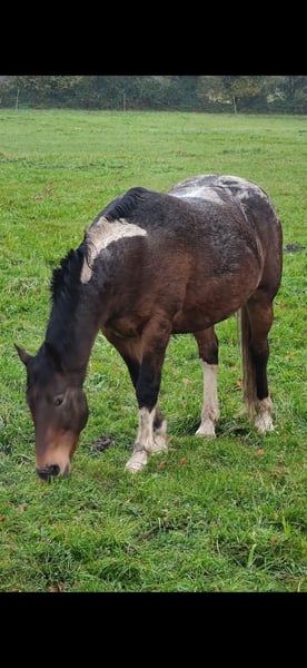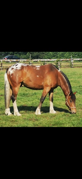 Mein robuster Apaloosa-Mix Wallach Jay sucht ein neues Zuhause. Da sich einige Veränderungen in meinem Leben ergeben haben, finde ich einfach nicht mehr die Zeit um ihm gerecht zu werden und bevor er bei mir verwahrlost, suche ich lieber jemanden der ihn wieder fordert. Er ist 2010 geboren, hat ein Stockmaß von 155cm und läuft Barhuf. Verladen, Tierarzt oder Schmied sind überhaupt kein Problem. Jay, eigentlich Jason, kommt ursprünglich aus Frankreich (deshalb kein deutscher Equiden-Pass) und wurde von da nach Irland verbracht und für Wanderritte genutzt. Ich habe ihn Western geritten, das hat gut funktioniert obwohl ich blutiger Anfänger war. Er wird als angeritten verkauft, da ich nicht weiß wie gut er wirklich ausgebildet ist. Meine Reitlehrerin hat mal getestet was er kann und ist mühelos fliegende Galoppwechsel geritten, er könnte also ziemlich gut ausgebildet sein. Bodenarbeit an der Longe, auch mit Stangen oder Hütchen, funktioniert auch problemlos. Durch die mangelnde Zeit meinerseits, hat er jetzt über ein Jahr lang nichts mehr gemacht und müsste wieder antrainiert werden. Auch wenn er ein ruhiges Gemüt hat muss man sich durchsetzen können, sonst tanzt er einem auf der Nase rum. Wie bereits erwähnt ist Jay sehr robust, er war nie krank oder verletzt, braucht(und will) keine Decke im Winter und ist sehr leichtfuttrig. Platz geht auf jeden Fall vor Preis. Reine Boxenhaltung ohne Auslauf kommt nicht in Frage. Für mehr Infos oder bei Fragen einfach melden.